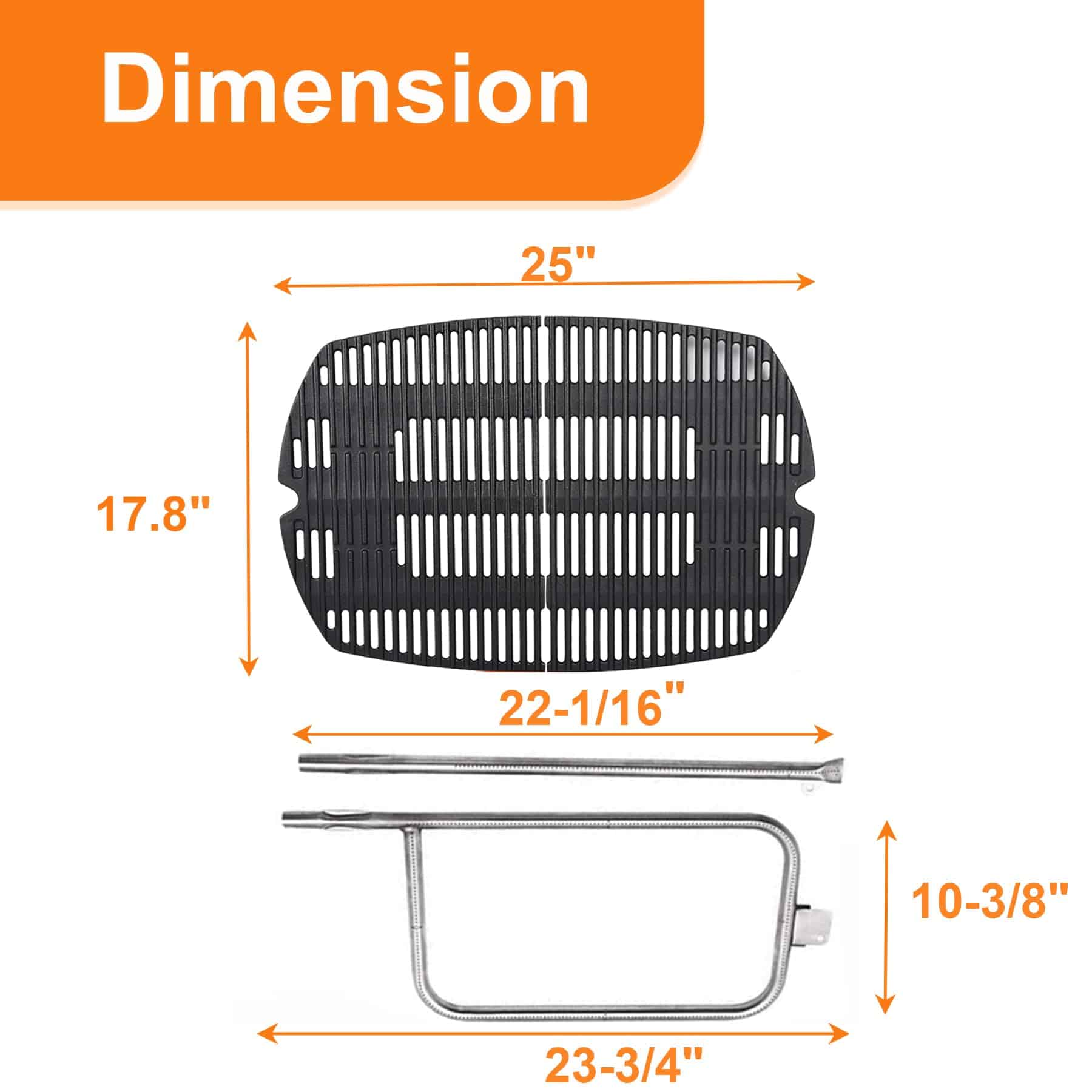 Dimensiones – Quemador: 23-3/4″ x 10-3/8″ Parrilla de Cocina de Hierro Fundido: 25″ x 17.8″