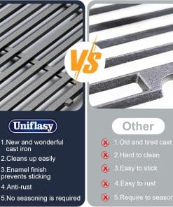 Conjunto de parrillas para Weber Spirit e310, diseñadas para adaptarse perfectamente a una variedad de modelos Weber, incluidos Spirit, Genesis y más. Este juego de parrillas de hierro fundido está construido para durar, ofreciendo una retención de calor excepcional y la capacidad de sellar los jugos de la carne para una experiencia de parrilla mejorada. Reemplace sus viejas parrillas desgastadas con este conjunto de parrillas de hierro fundido para un rendimiento óptimo y resultados deliciosos en cada asado. Instalación sin complicaciones y tamaño perfecto para adaptarse a varios modelos de parrillas Weber. Mejore su experiencia de parrilla con estas parrillas de hierro fundido de alta calidad.