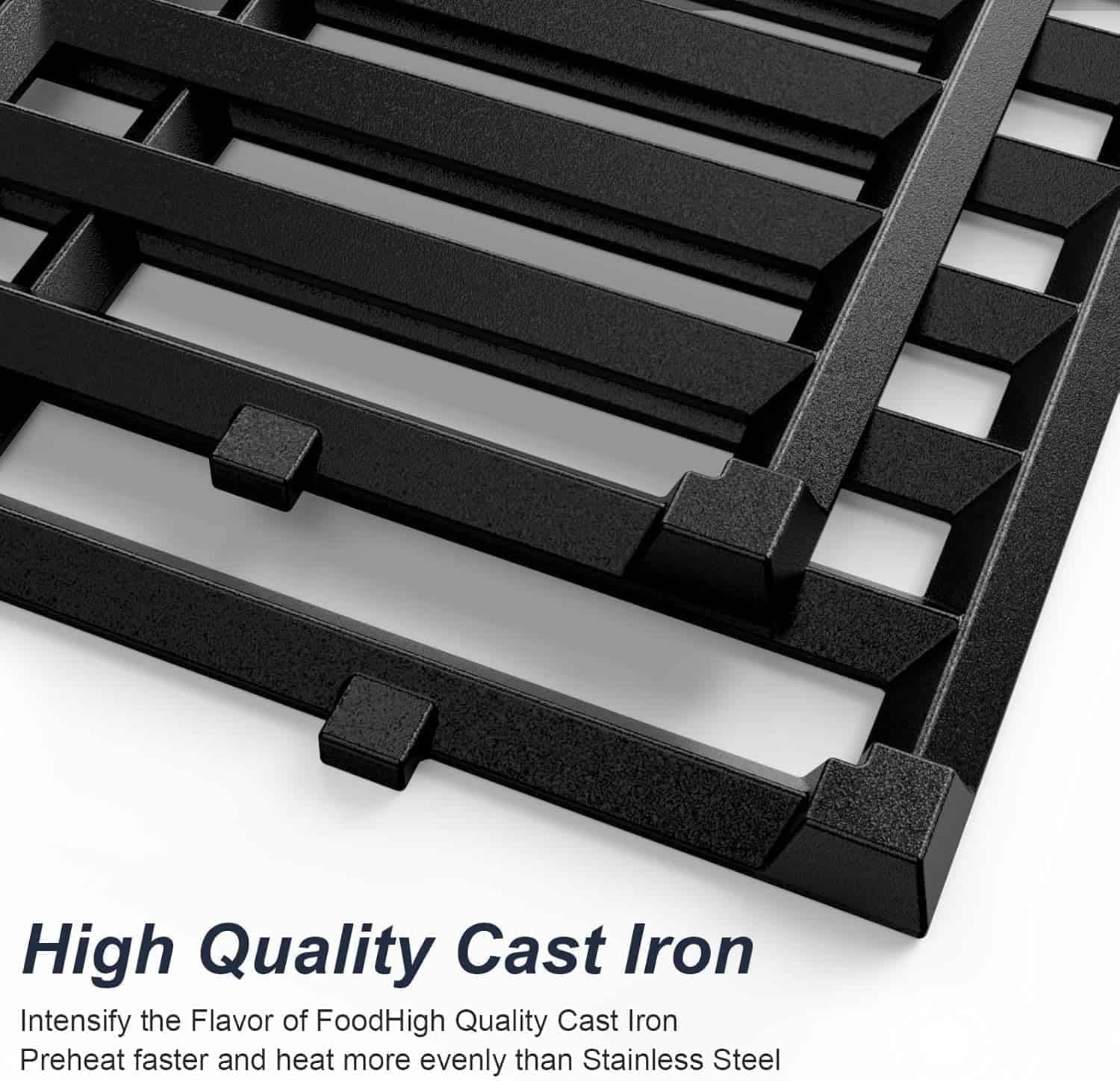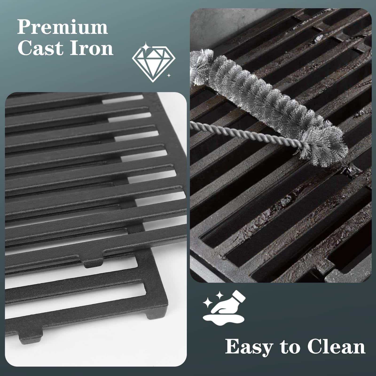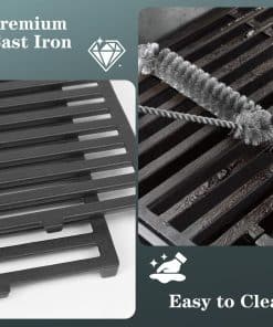 6. Sin pegarse y con espacios más pequeños Este repuesto de parrillas de hierro fundido weber spirit ii es antiadherente. Además, el diseño con espacios más pequeños entre las barras garantiza que la comida no se caiga de las parrillas. Retención de calor Esta parrilla Spirit 2 300 para piezas de weber spirit no solo soporta altas temperaturas con el tiempo y distribuye el calor de manera más uniforme, sino que también ofrece un sellado profesional.