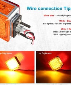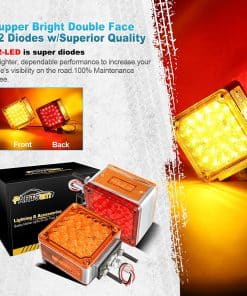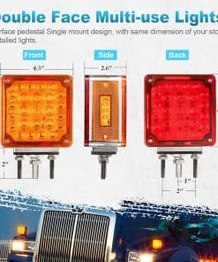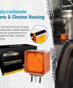 Partsam es uno de los mayores proveedores de luces de marcador del mercado de accesorios automotrices en América del Norte. ¡Puedes encontrar todas las luces de marcador que necesitas en Partsam! Especificaciones: – Luz de Parada de Pedestal de LED de Doble Cara – Función: Luz de parada, luz de giro, luz de cola, luz de estacionamiento, freno y luz de marcador lateral – Ajuste: Camión, Autobús, Remolque, Tractor, Excavadora, Furgoneta, Buldózer, Grúa, etc. – Voltaje: DC12V – Color: Rojo + Ámbar – Material: Lente de PC (Policarbonato) y Carcasa Cromada – Tamaño: 4.64″ x 4.46″ x 2.51″ 3 Cables de Color: – Blanco es Negativo – Blanco + Negro: Luz completa encendida en baja intensidad. – Blanco + Rojo: Luz trasera y delantera encendidas en alta intensidad. Características: – Diseño de reflector, menor consumo de energía. – Los LED no tienen filamento, por lo tanto, son extremadamente resistentes a golpes y vibraciones. – Los LED tienen menor consumo de corriente, lo que resulta en una mayor vida útil de la batería y del alternador. – Electrónica encapsulada en resina epoxi protege la lámpara de daños causados por productos químicos y humedad. – Amigable para la instalación, no se requiere modificación. Paquete Incluye: 2 x Luz de Pedestal de Doble Cara con Montaje de Perno Ámbar/Rojo 52 LED