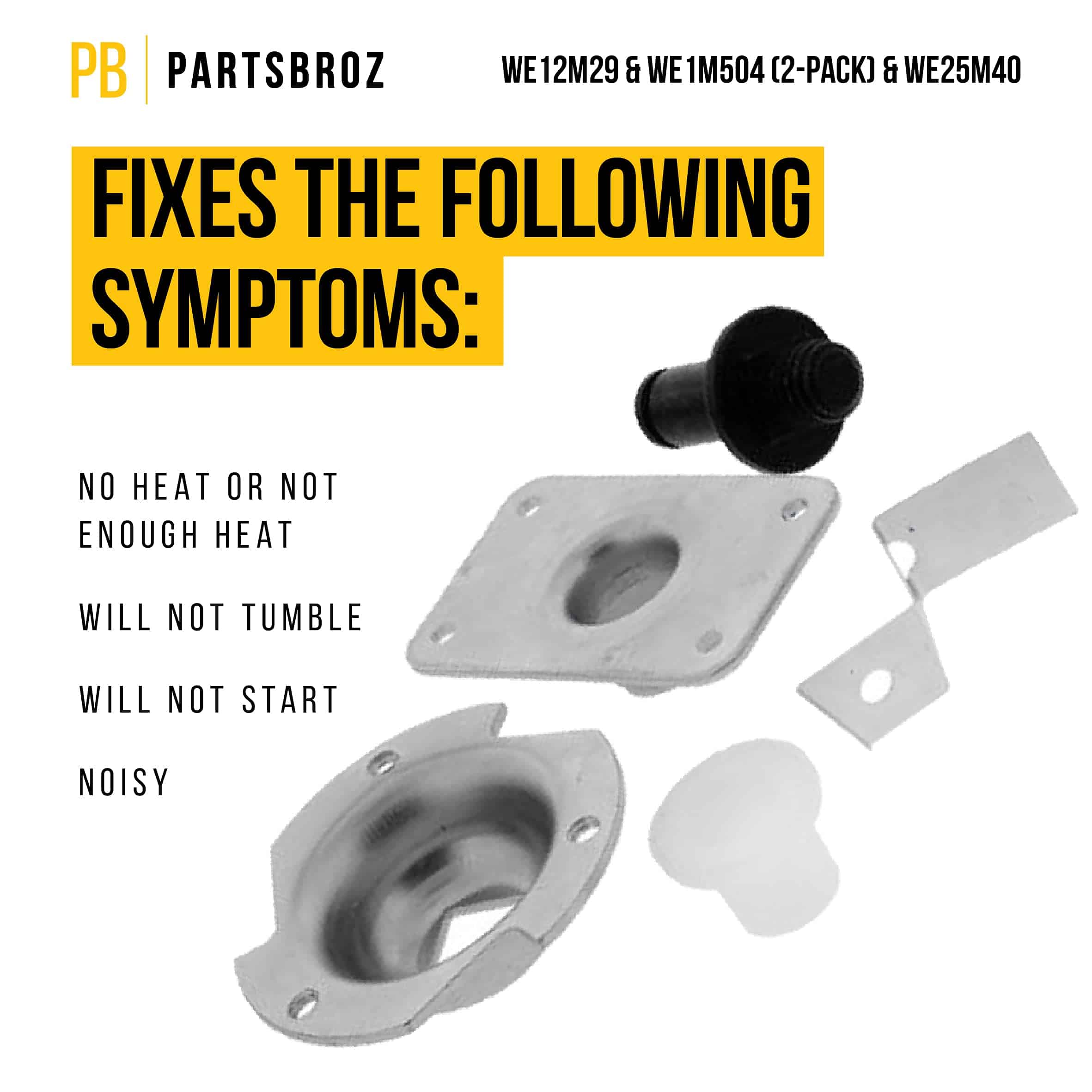 Compatible con: Secadora, Lavadora/Secadora. Reemplazar las tres partes puede arreglar los siguientes síntomas: No girará; Ruidoso; Sin calor o no hay suficiente calor; Marcas dejadas en la ropa; Toma demasiado tiempo secar; No se inicia. Marcas y modelos compatibles incluyen pero no se limitan a: General Electric: DBXR453EV0WW, DPSR473EW0WW, DBXR463EB0WW, DBXR453EA1WW, DBSR453EB0WW, DPSR473GW0WW, DBXR453GV0WW, DPSR483EA1WW, DBXR453ET5WW, DBSR453EB2WW, DBXR463ED1WW, DBXR453ET3WW, DHDSR46EG0WW, DBSR463EG0WW, DBXR453GT5WW, DPSR483EA0WW, DHDSR46EE1WW, DPSR475EW0WW, DWSR483EB0WW, DBXR463GB0WW, DWXR473ET5WW, DX4500EA1WW, NBXR453EV0WW, DBVH512EF0WW, DBXR463ED2WW, DPXR473EW0WW, DPSQ495ET0WW, DBSR453EB3WW. Samsung: HTDP120ED0WW, HTDP120GD0WW, HTDX050PM1WW, HTDX050PM2WW, HTDX100ED0WW, HTDX100EM0WW, HTDX100EM1WW, HTDX100EM2WW, HTDX100GD0WW, HTDX100GM0WW, HTDX100GM1WW, HTDX100GM2WW, NBXR333EG1WW, NBXR333EG2WW, NBXR333EG3WW, NBXR333EG4WW, NBXR333EG5WW, NBXR333EG6WW, NBXR333EG7WW, NBXR333GG1WW, NBXR333GG2WW, NBXR333GG3WW, NBXR333GG4WW, NBXR333GG5WW, NBXR333GG6WW, NBXR333GG7WW, NBXR333GG8WW, NISR333DTBWW, NISR333DTCWW, NISR333DTDWW. Kenmore / Sears: 266,153211, 266,153221, 266,1532211, 266,1532212, 266,1532311, 266,1532312, 266,1532412, 266,1532413, 266,1532513, 267,15321, 267,153211, 267,153221, 267,1532211, 267,1532212, 267,1532311, 267,1532312, 267,1532412, 267,1532413, 363,6153211, 363,6153241, 363,6154221, 363,6154231, 363,6154241, 363,6154241, 363,7153211, 363,71542, 363,7154221, 363,7154231, 363,7154241. No está seguro de la compatibilidad Comuníquese con nosotros en el frontal de la tienda de PartsBroz o en la sección de preguntas y respuestas del cliente.