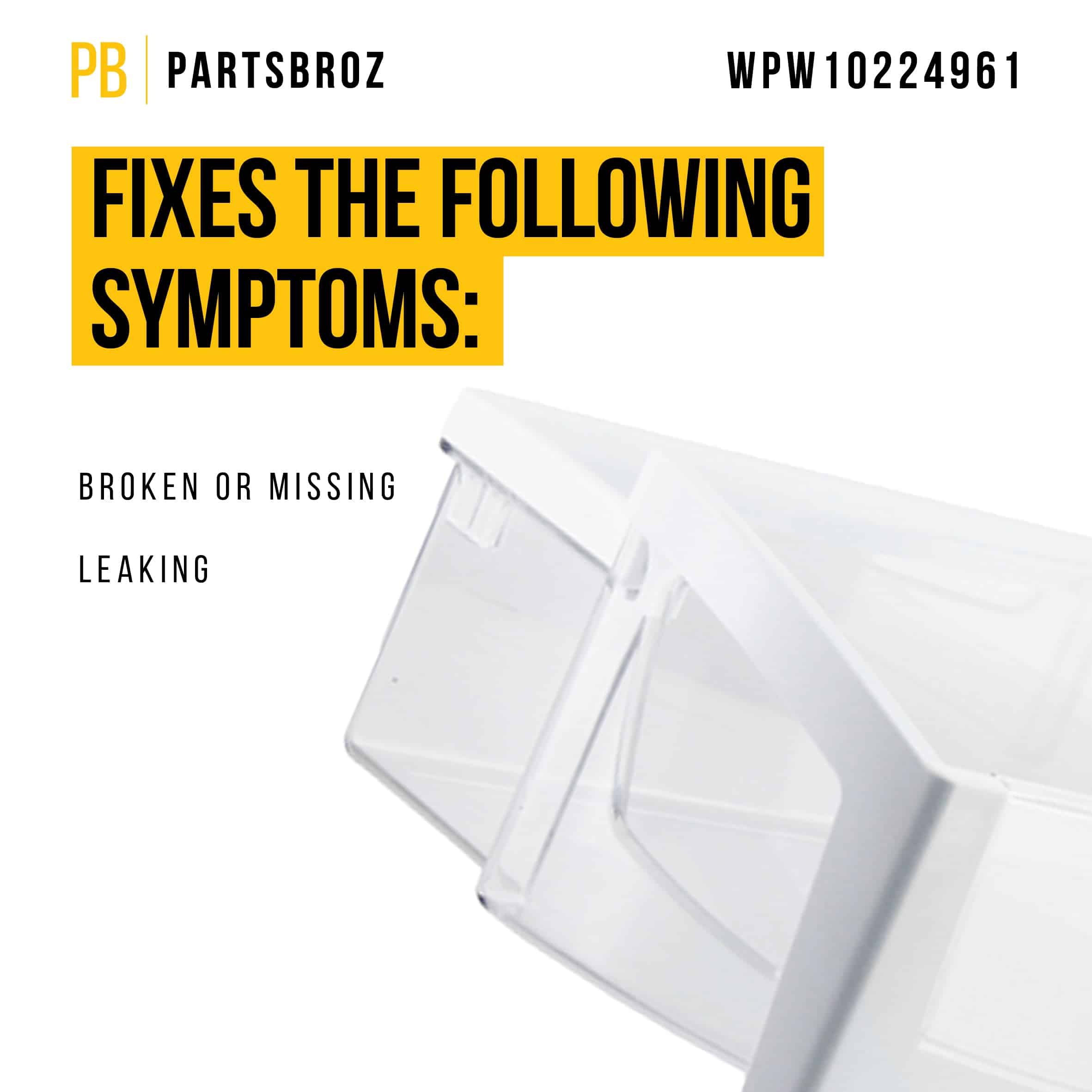 Pieza de repuesto de alta calidad: Asegúrese de que su refrigerador Whirlpool, Maytag o Amana funcione de manera eficiente y efectiva con la bandeja para puerta WPW10224961 de PartsBroz. Esta pieza de alta durabilidad es un equivalente directo de las piezas WPW10224961, AP6017363, W10224961, 1872710 y PS11750660.