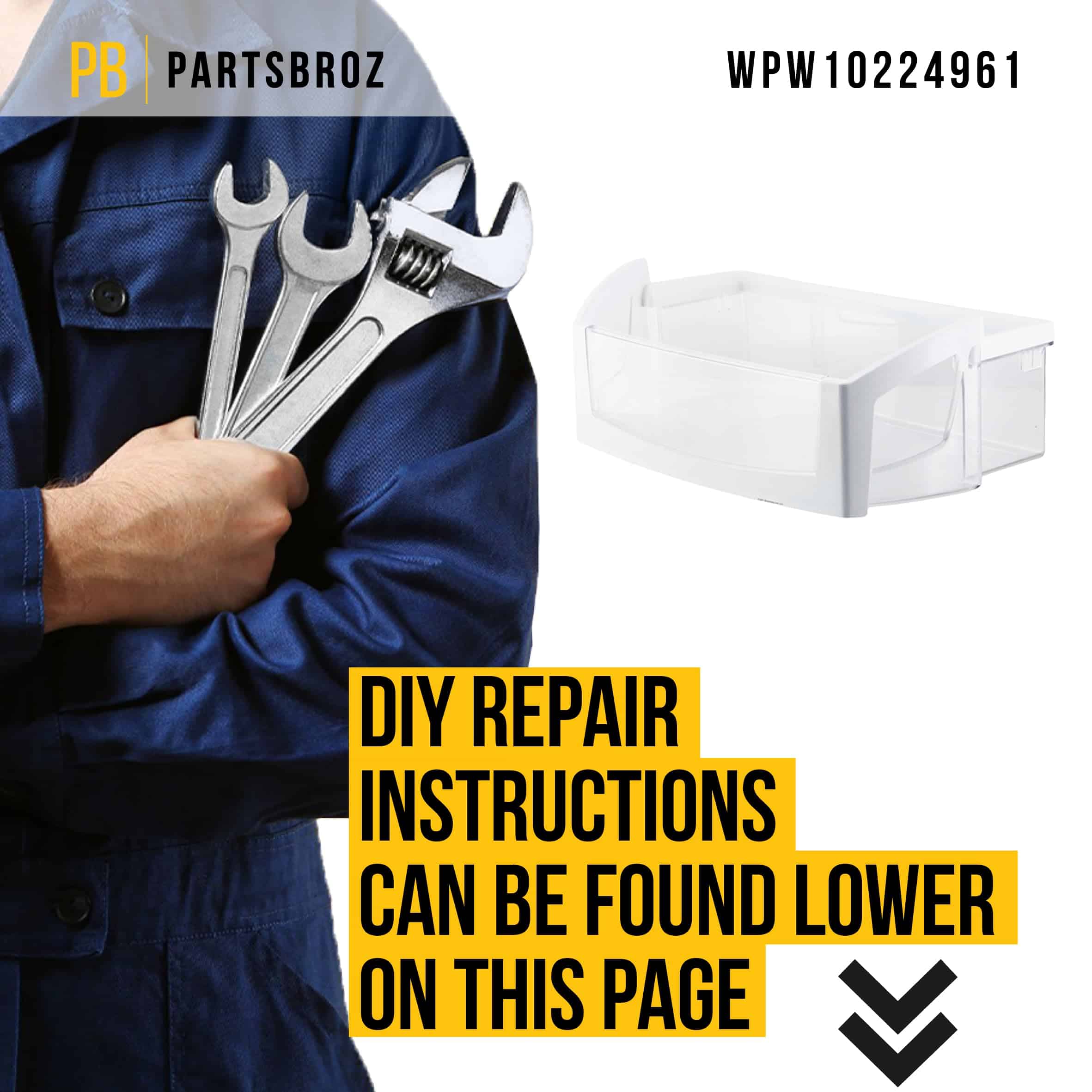 Garantía de satisfacción: En PartsBroz, estamos comprometidos a brindar a nuestros clientes productos de alta calidad y un servicio al cliente excepcional. Si tiene alguna pregunta o inquietud sobre su compra, no dude en comunicarse con nosotros. Estamos aquí para garantizar que esté completamente satisfecho con su bandeja para puerta WPW10224961.
