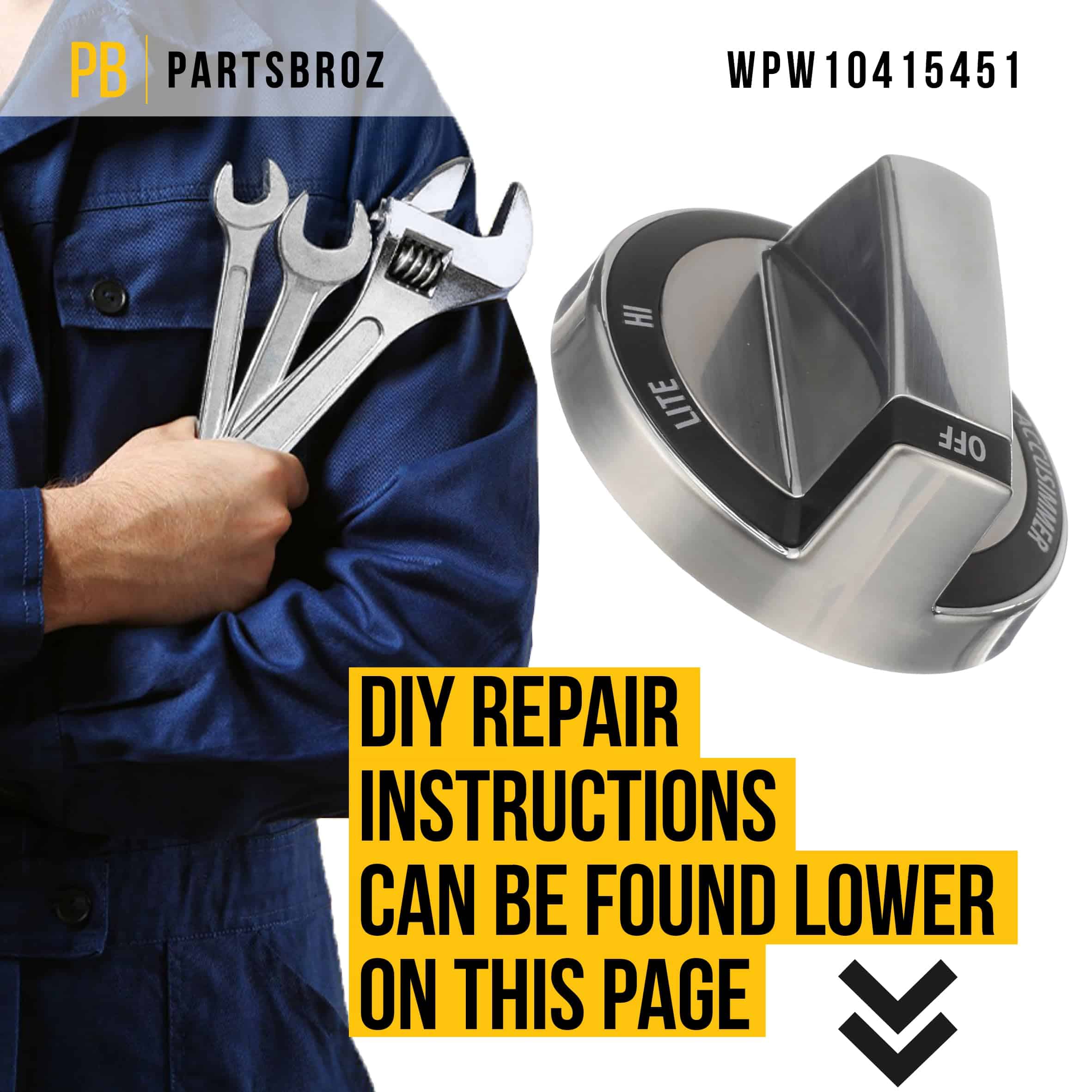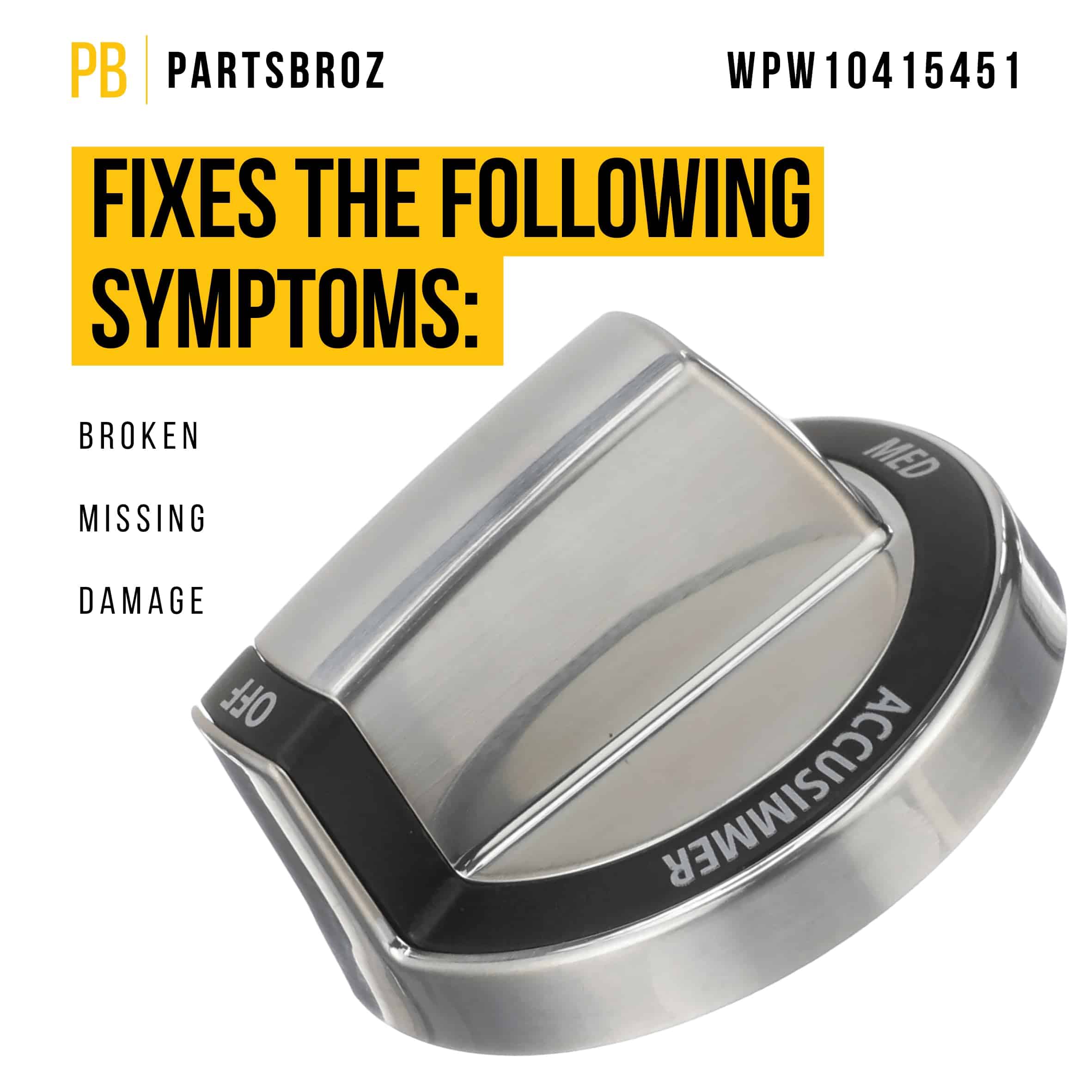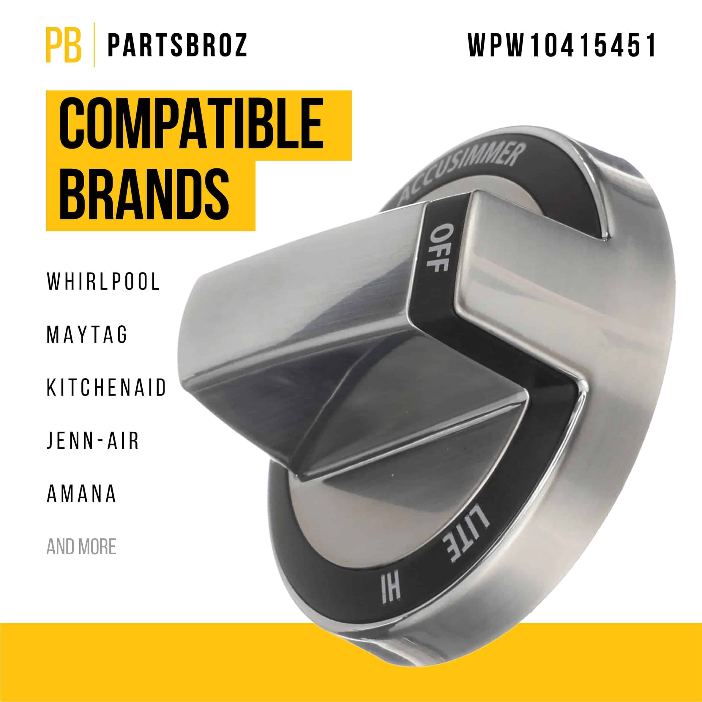 PartsBroz WPW10415451 Perilla Cromada – Compatible con