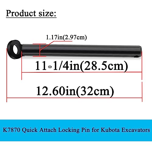 Descripción Este pasador de bloqueo de enganche rápido es el único pasador que normalmente se quita para quitar un cubo o accesorio. Este pasador es igual al número de parte de Kubota 70000-00220. Se suministra generalmente con el Montaje de Enganche Rápido K7870.