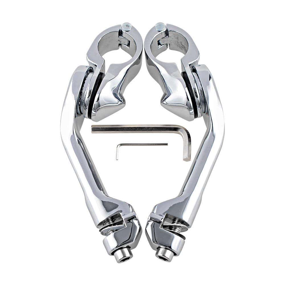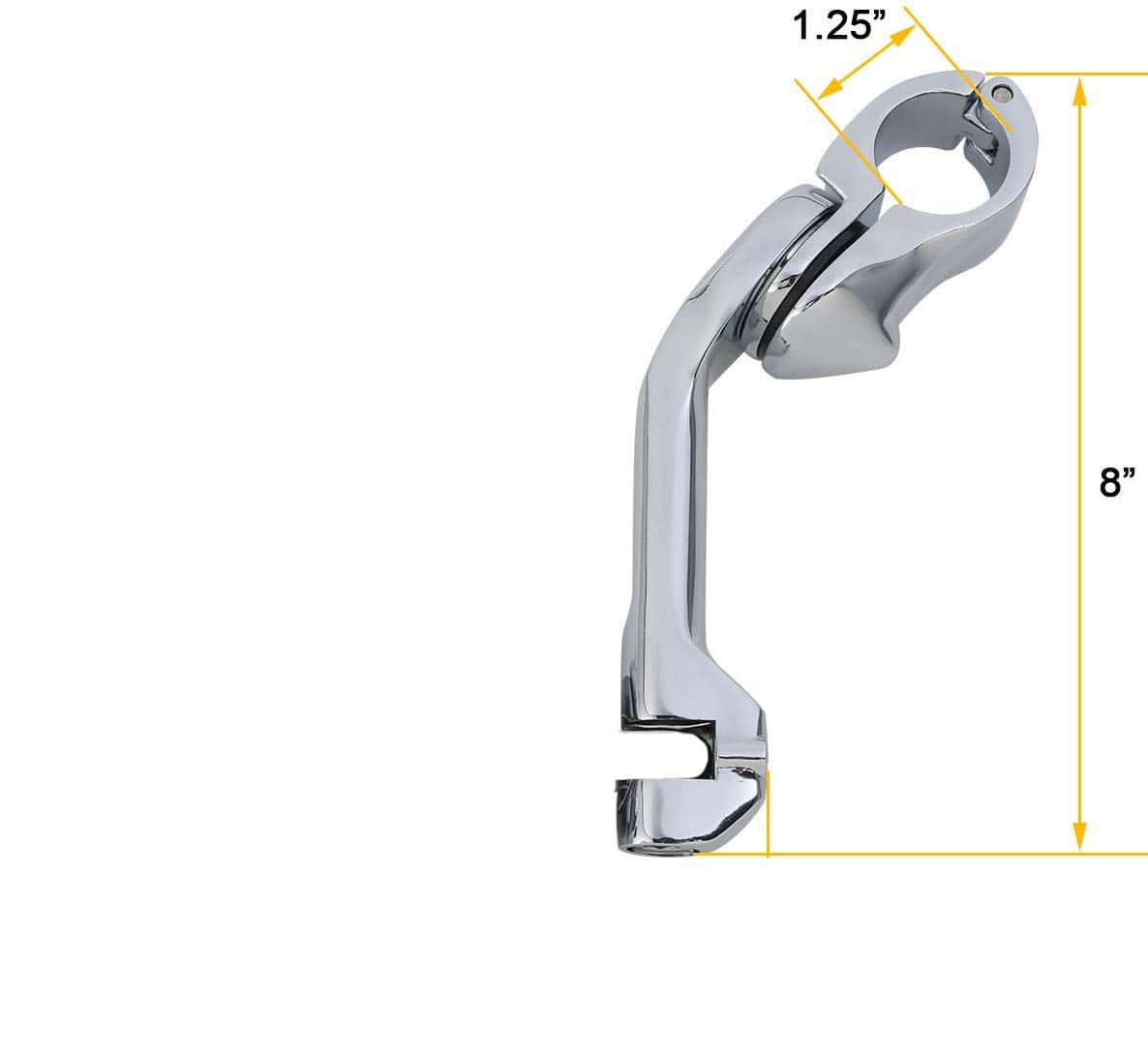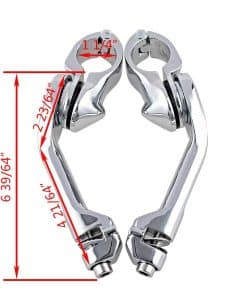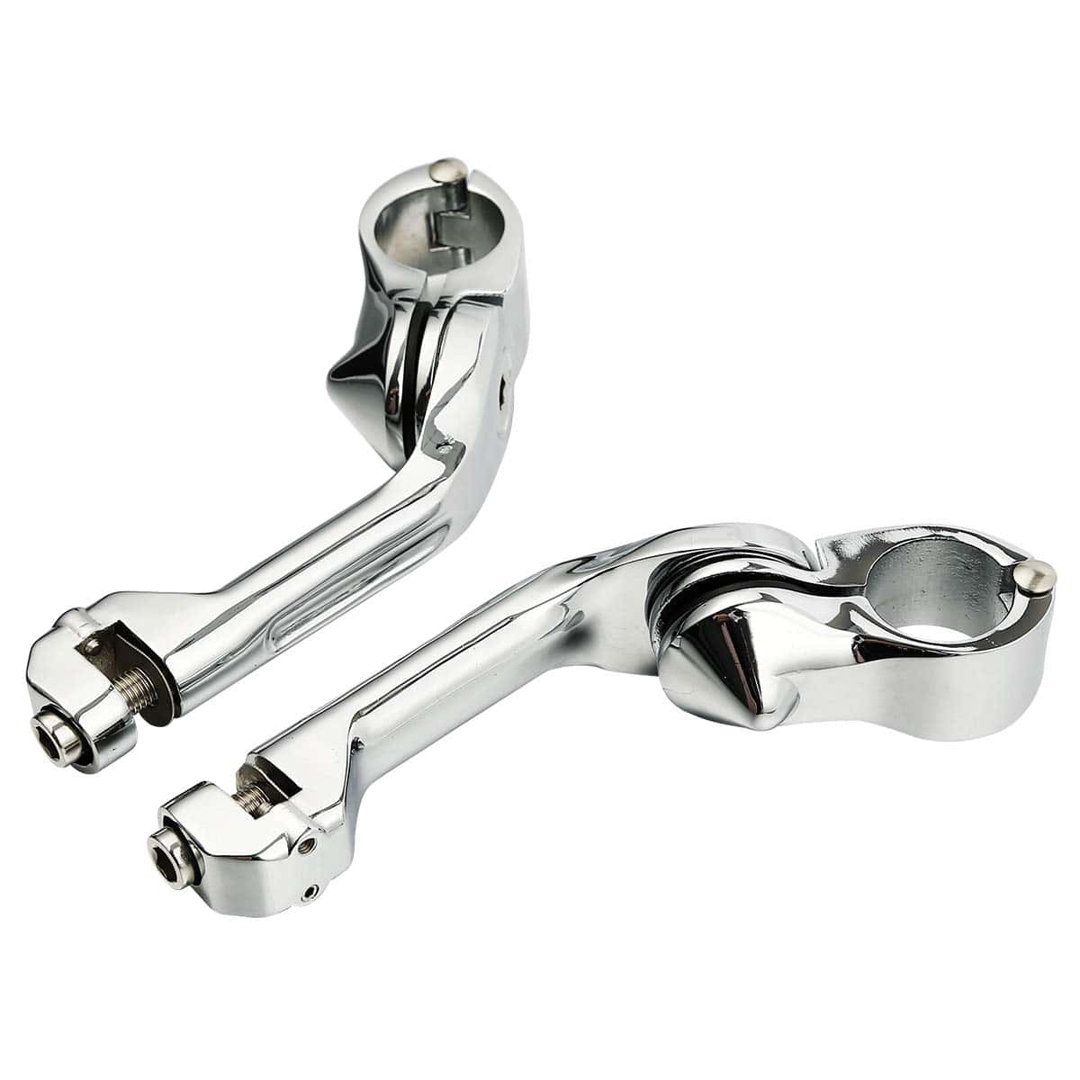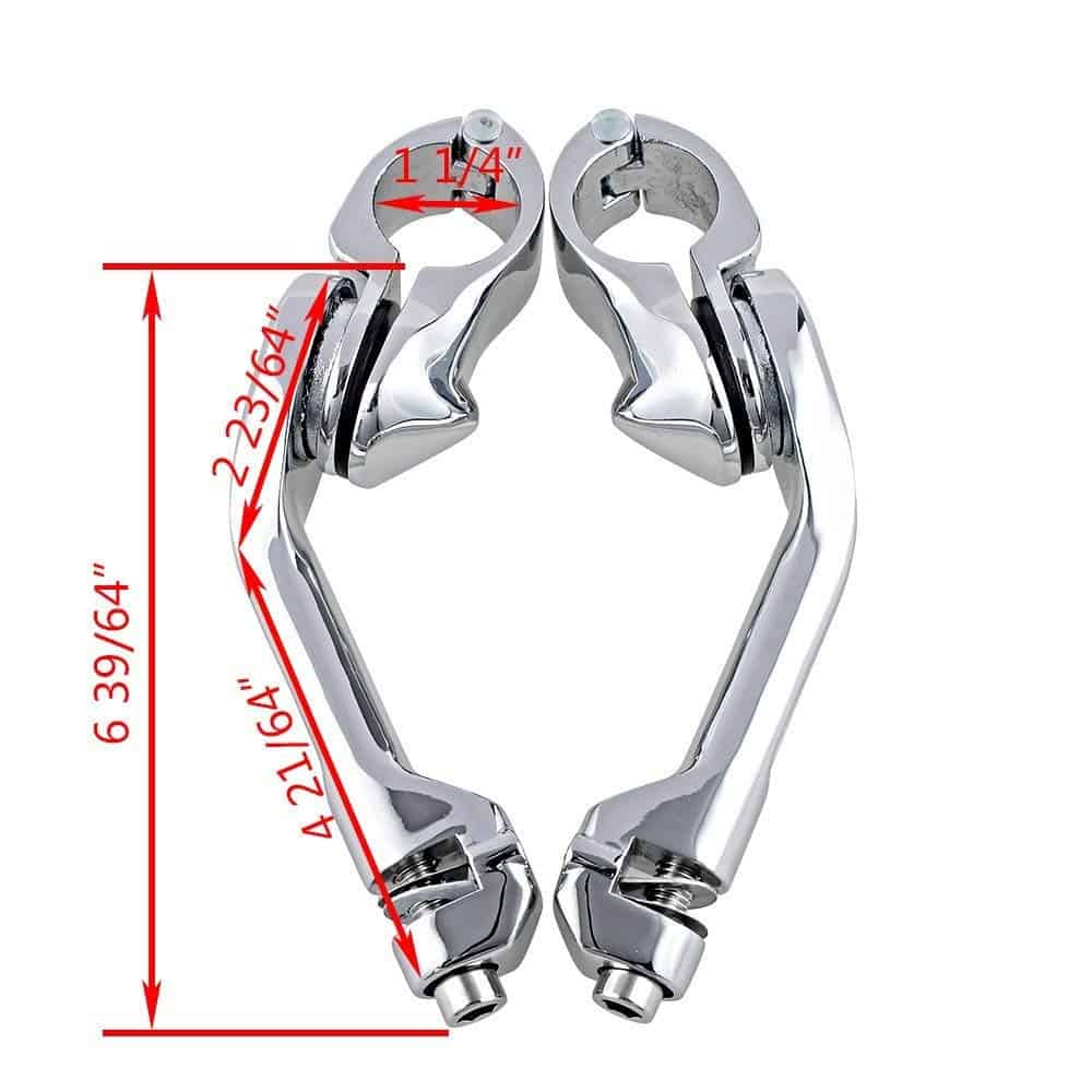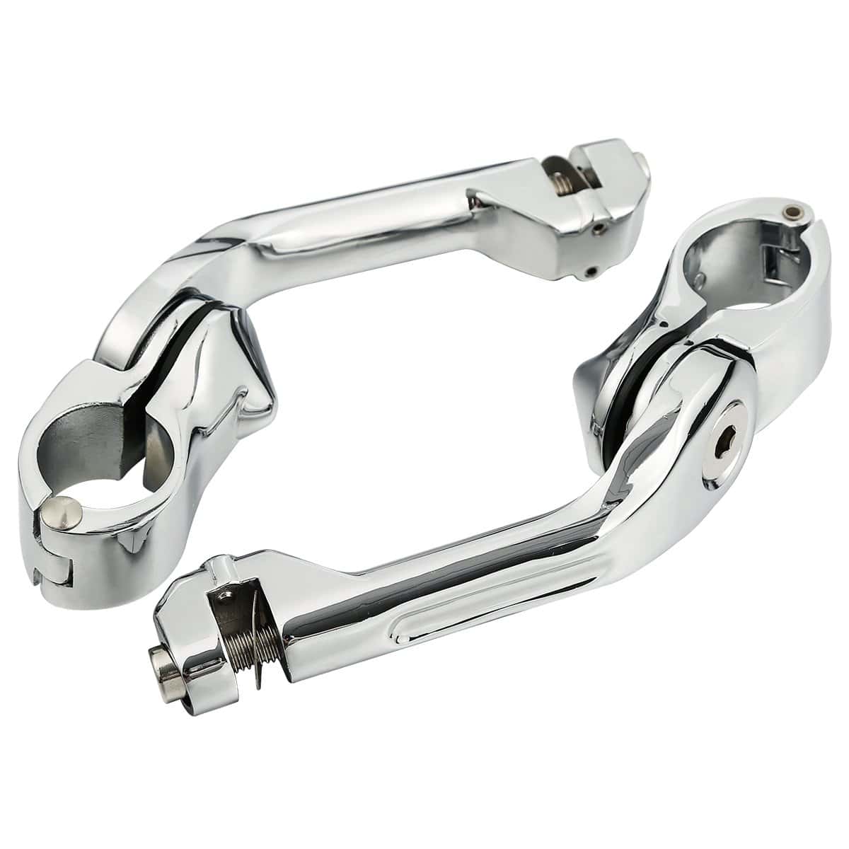 Paso de barra de choque de carretera angulada larga de 1-1/4″ cromado montajes para motocicletas Harley Honda Kawasaki Yamaha. Características: Condición: 100% nuevo de posventa. Calidad de alta clase y muy duradero. Estira para mayor comodidad. Este kit de montaje de reposapiés ajustable cromado puede ajustarse para ciclistas más bajos y puede invertirse para llegar hacia adelante para aquellos con piernas largas. El diseño angulado permite que el brazo alcance hacia atrás y alrededor para despejar los bajos del carenado. El brazo se puede levantar y bajar para un ajuste personalizado. La abrazadera de montaje agarra firmemente el protector del motor y el diseño de bloqueo asegura el reposapiés en el ángulo deseado. Fácil de instalar, instrucciones no incluidas. Estilo: Largo angulado. Material: Metal de alta calidad. Color: Cromado. Ajuste: Se adapta a todos los modelos con protectores de motor de 1-1/4″ (32mm). Paquete incluido: 1 par de monturas de reposapiés de carretera (izquierda y derecha).