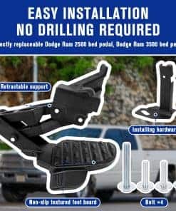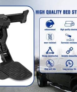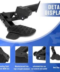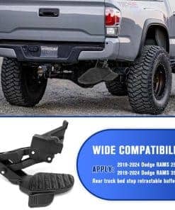 Paso de cama trasera retráctil compatible con Dodge Ram 2500 3500 2019-2024, paso retráctil de paragolpes de cola. Amplia compatibilidad: este paso de cama trasera es compatible con Dodge Ram 2500 y 3500 2019-2024, reemplazando el paso retráctil del paragolpes trasero. Parte de repuesto: este paso de cama retráctil reemplaza los números de parte: 82215842, 82215842AB, 82215842AC, 82215842AD, 82215842AE, 82215842AF, 82215842AG, 82215842AH. Alta calidad: fabricado con aluminio mejorado de alta calidad, resistente al desgaste, resistente a la corrosión, estructura sólida y conexión confiable, paso antideslizante y larga vida útil. El paso del paragolpes del camión está diseñado para soportar 300 lbs. Fácil instalación: se instala en la esquina inferior de la puerta trasera, fácil de instalar, sin necesidad de taladrar, reemplazo directo para el paso de cama de Dodge Ram 2500 y 3500. Servicio de calidad: nos comprometemos a brindar un servicio satisfactorio. Si tiene alguna pregunta o inquietud sobre nuestro paso de cama trasera dentro de los 6 meses posteriores a la compra y uso, contáctenos para obtener la mejor solución.