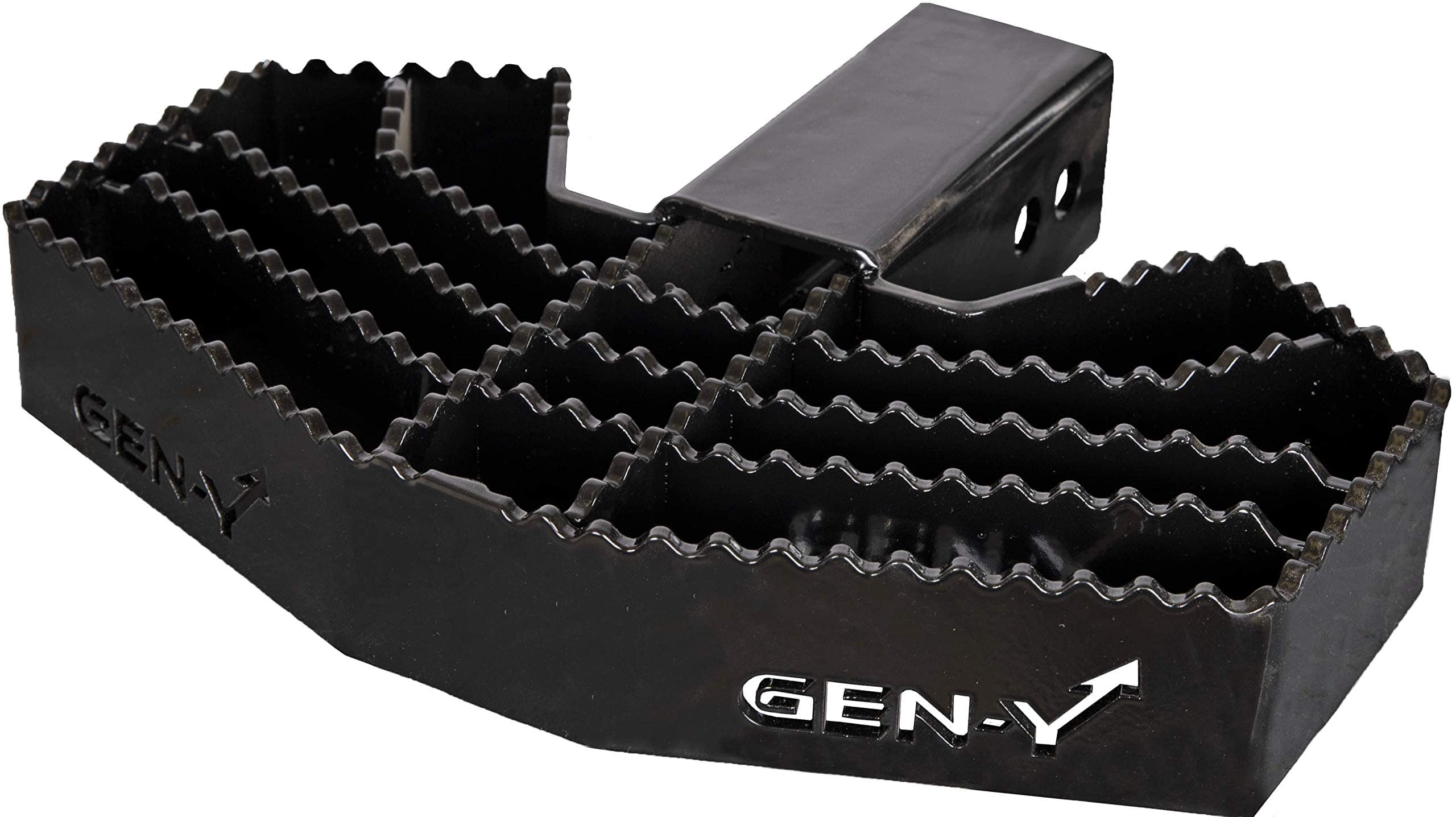 Este paso de enganche dentado está calificado para una capacidad de 300 y 500 LB y está diseñado para no resbalar. Se adapta a todos los enganches Gen-Y. Este paso de enganche está diseñado para ser un paso funcional mientras se remolca un remolque.