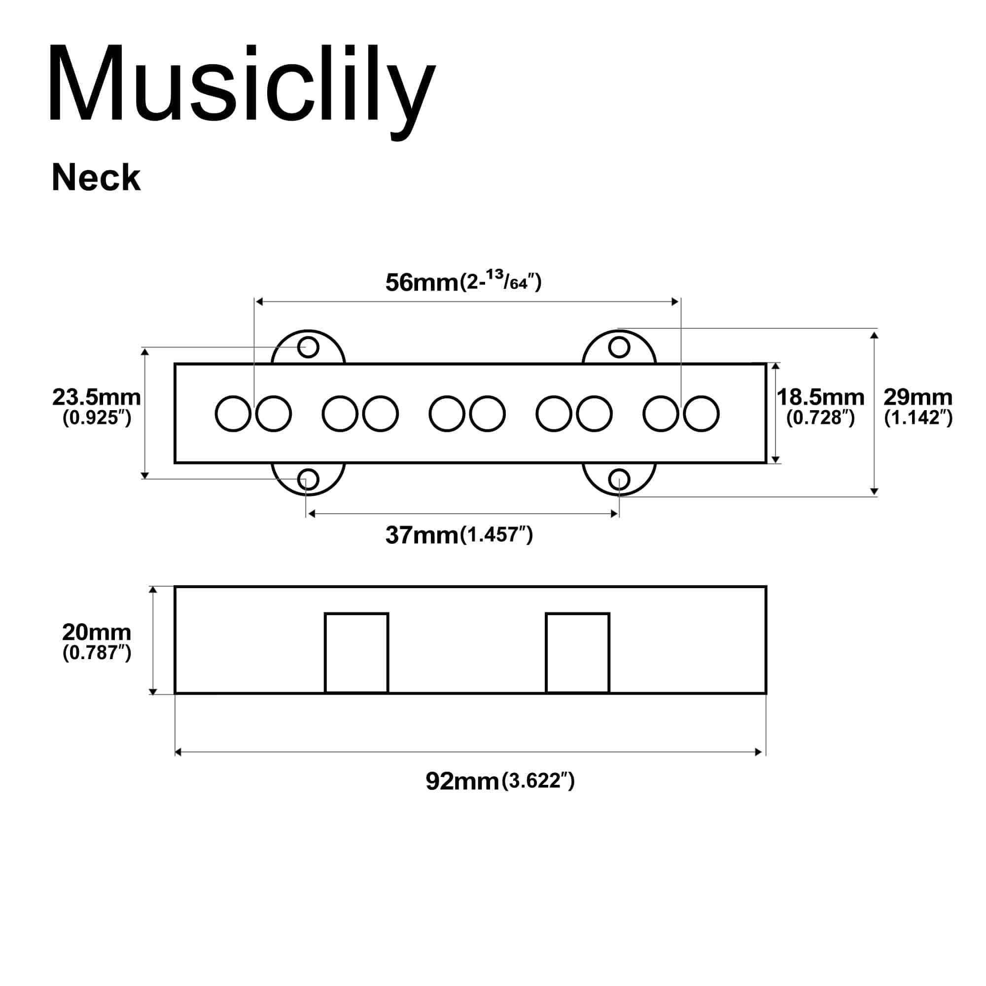 Musiclily Pro JB-70S Alnico 5 Single Coil Neck Pickup 8.4K para bajo estilo Jazz Bass, negro.