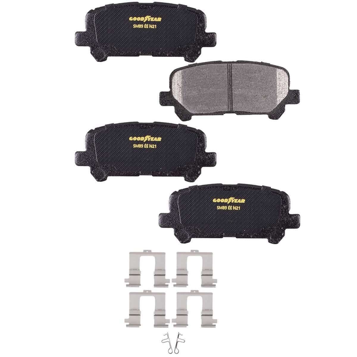 Las pastillas de freno Goodyear están formuladas específicamente para garantizar un frenado silencioso y con poco polvo, manteniendo al mismo tiempo la máxima efectividad de frenado, control y durabilidad. Utilizamos una tecnología patentada de Shim de Trenza Vulcan para eliminar el ruido y proporcionar un viaje más cómodo – Se utilizan ranuras y chaflanes que coinciden con las especificaciones del fabricante original para reducir la vibración y la decoloración de los frenos. Goodyear Brakes siempre aplica un acabado de polvo de calidad en cada pastilla de freno para una máxima protección contra el clima y la corrosión. Los kits de hardware premium están incluidos cuando sea necesario. Las pastillas de freno Goodyear son orgullosamente Made in the USA.