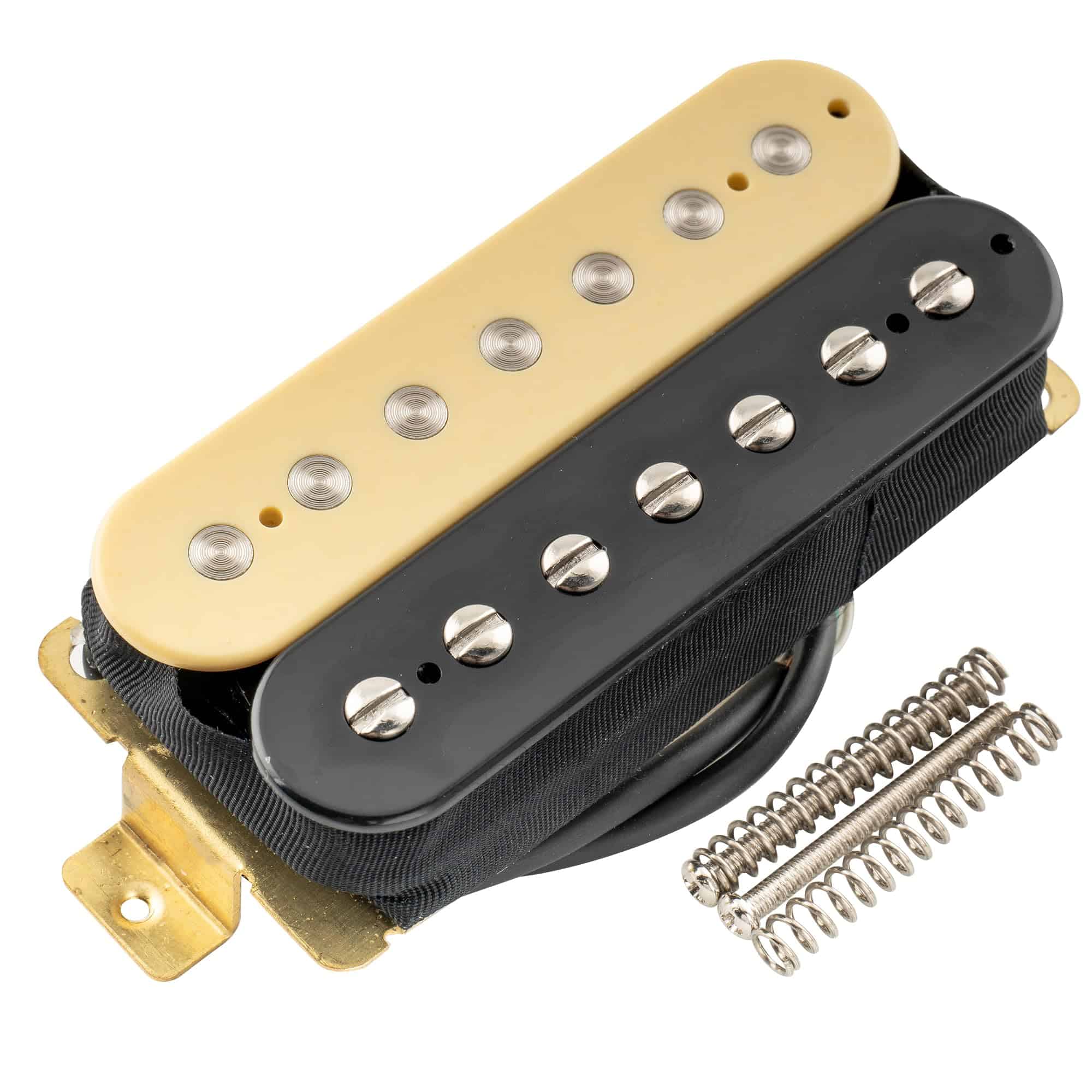 Pastilla para guitarra eléctrica de 7 cuerdas Artec HBA117 Alnico 5 Magnet Uncovered Humbucker 9.2K, Zebra. Esta pastilla de mástil sin cubierta es perfecta para lograr el sonido clásico y potente que buscas en tu guitarra. Con una resistencia de 9.2K y varillas de Alnico V, proporciona un sonido grueso y lleno que es ideal para diversos estilos musicales. Su espaciado de polos y distancia entre agujeros de montaje la hacen compatible con una amplia variedad de guitarras de 7 cuerdas. ¡Incluye todo lo necesario para su instalación y disfruta de un sonido de alta calidad en tu instrumento!