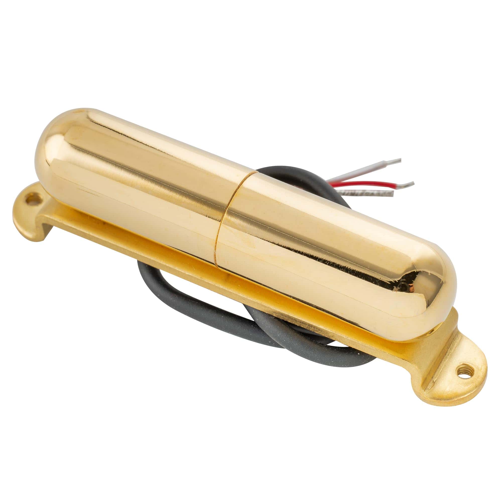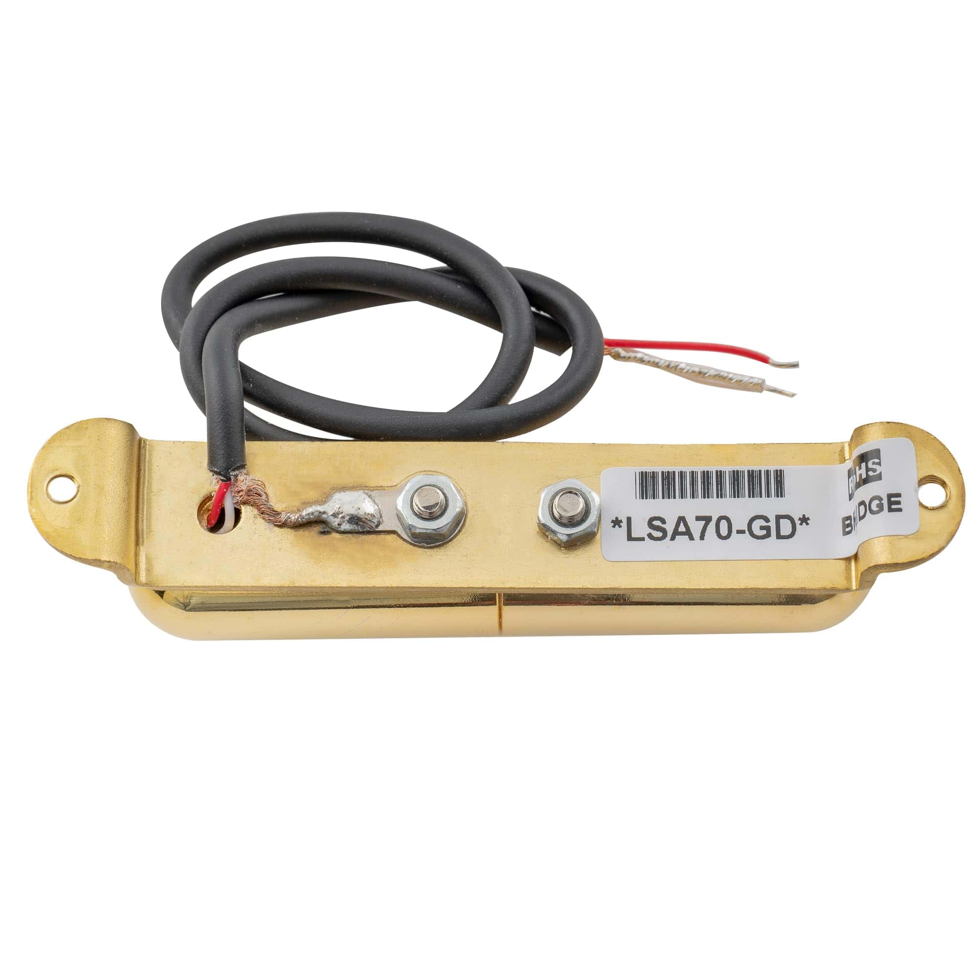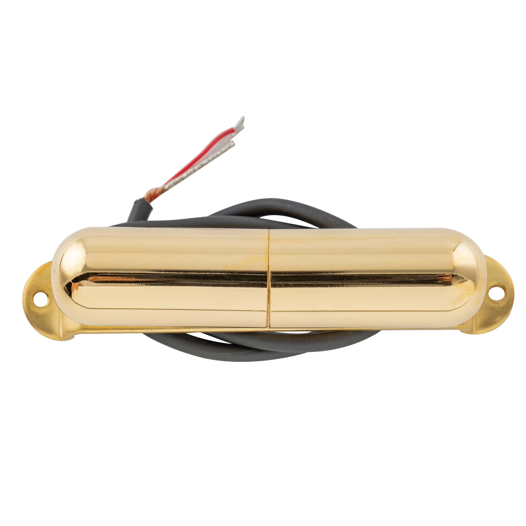 Pastilla de puente de bobina simple estilo Alnico 5 Lipstick LSA70 de Artec 7.5K para guitarra eléctrica estilo Strat, en color dorado. Esta pastilla cuenta con imanes de Alnico V que proporcionan un tono brillante y abundante. Con un espaciado de postes de 55mm y distancia entre agujeros de tornillo de montaje de 76.8mm. Tiene una resistencia de 7.5K con una tolerancia de 0.5K y está cubierta en oro. El empaque incluye 1 pastilla y accesorios de montaje. Por favor tenga en cuenta que los tornillos pueden no ser compatibles con su uso, se recomienda utilizar los propios.