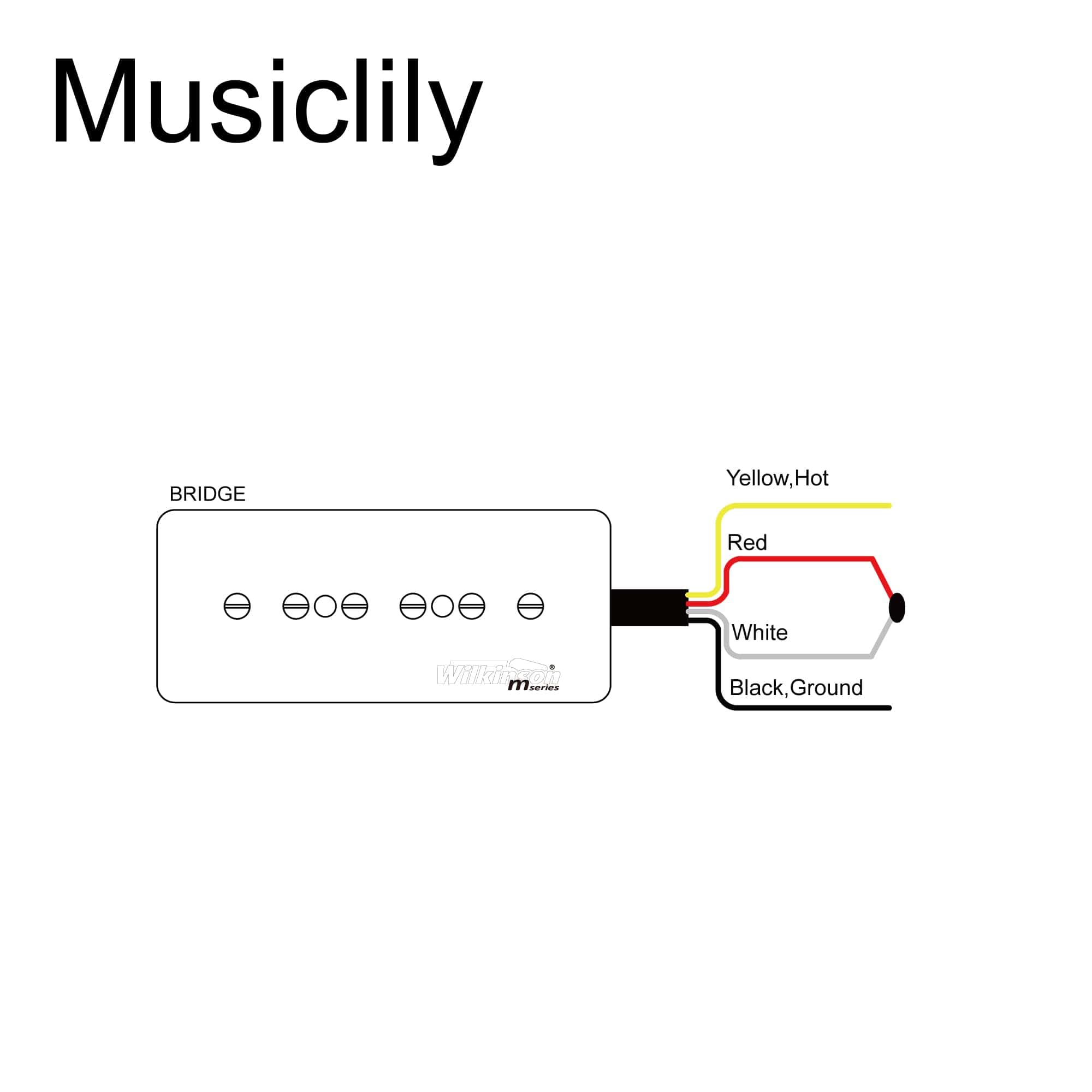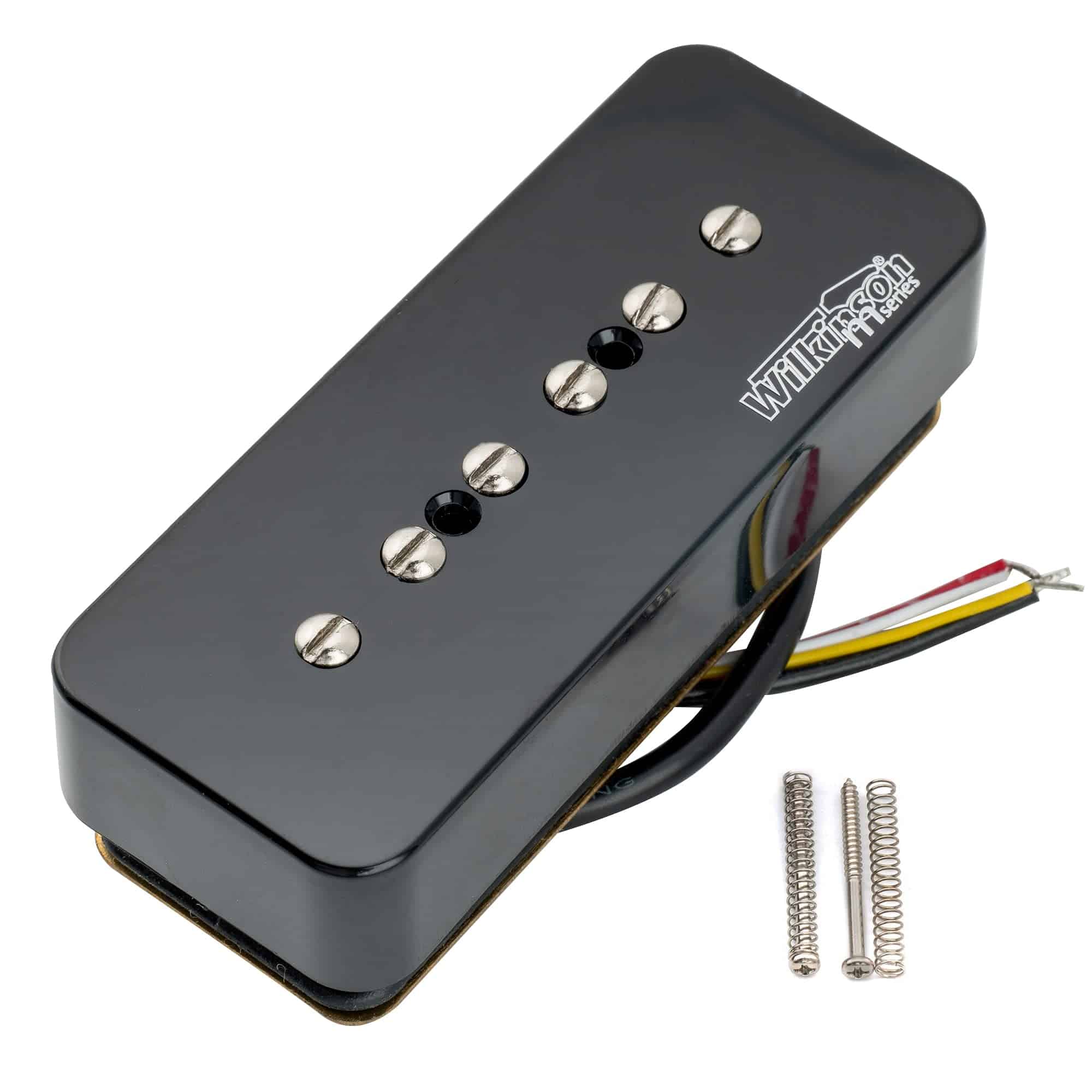 Pastilla de puente de bobina única Cerámica Stacked P90 Serie M de Wilkinson para guitarra eléctrica en color negro. Ideal para muchas guitarras eléctricas estilo P-90 que necesitan pastillas en la posición de puente, encapsulada en cera. Modelos típicos de guitarra incluyen SG, LP, serie Axis y la Epiphone Casino, incluso la Fender Tele puede usarla también. Piezas genuinas de Wilkinson, la serie M se fabrica en China y se distribuye por Musiclily. Esta pastilla P90 especial es famosa por su sonido ICÓNICO con cancelación de ruido. Son bobinas apiladas con cuatro conductores para dividir las bobinas y obtener un sonido clásico único, usando un interruptor de división de bobina tendrás acceso a dos de los sonidos más famosos en el estilo de guitarra. Imán cerámico, resistencia D.C. de 16K con tolerancia de 0.5K. El cable blanco es caliente. En la parte posterior de la pastilla, B para Puente. El cable amarillo es caliente, el negro es tierra, el blanco y el rojo son cables de bobinas divididas. Paquete incluido: 1 pastilla. Nota: Nuestros tornillos pueden no ajustarse a tu uso, por favor utiliza los tuyos si es necesario