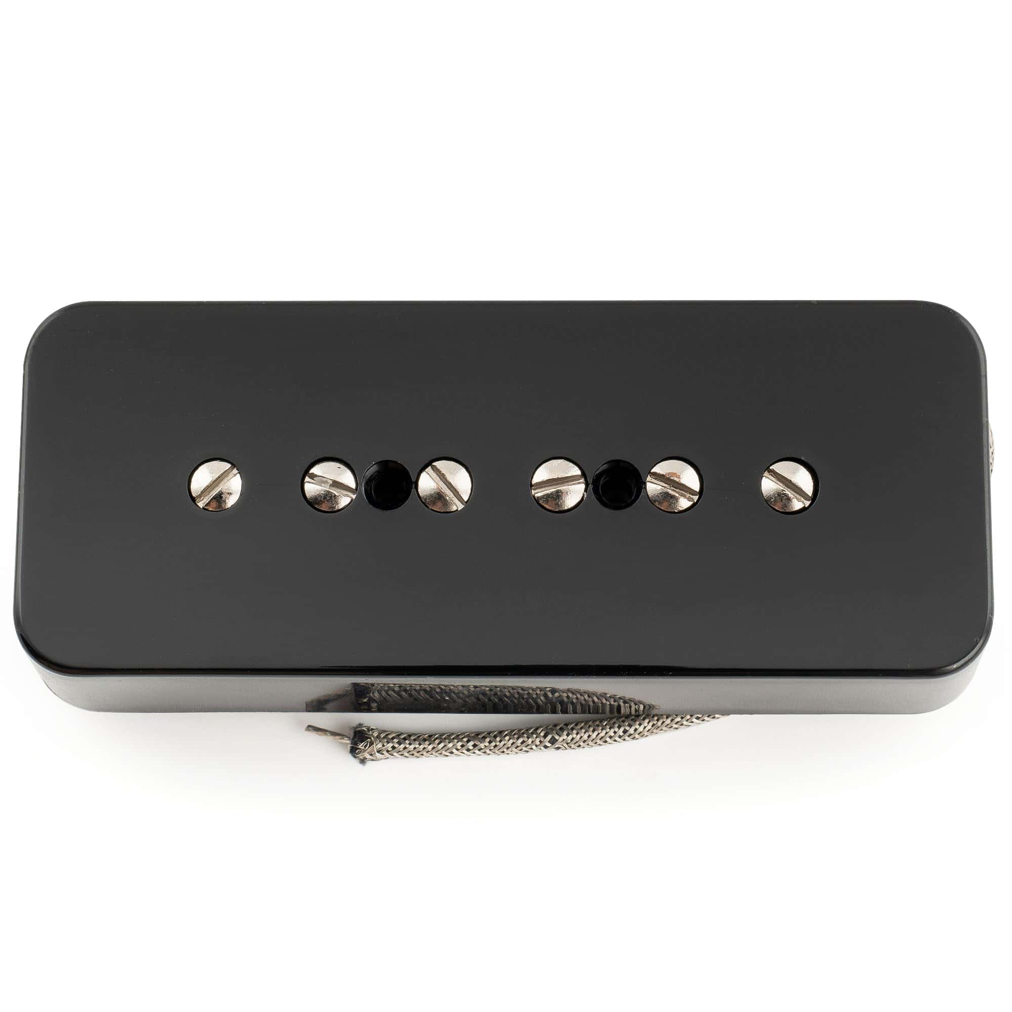 Pastilla de puente para guitarra eléctrica de bobina simple Musiclily Pro P90-BLA Alnico 5 P90 Soapbar, negra. Se adapta a guitarra eléctrica, posición de puente. Pastilla de bobina simple tipo soapbar P90 tradicional, los imanes de barra doble de Alnico 5 y los bobinas cortas y anchas le dan a la P90 su carácter tonal único con un mediocampo potente y una mayor salida que la mayoría de otros tipos de bobina simple. Esta pastilla tiene medios brillantes que realmente le dan un tono áspero y abierto. Los acordes tienen un bonito florecimiento armónico, y las notas individuales suenan cristalinas y adelantadas. Espaciado de piezas polares: 52mm (2-3/64 pulgadas), espaciado de agujeros de tornillo de montaje: 21mm (53/64 pulgadas). Resistencia: 9.5K, inductancia: 7.5H. Tolerancia: 0.5K para bobina simple, 1K para humbucker. El valor de resistencia cambiará según la temperatura y la humedad. Por lo general, el valor de resistencia será alto en climas calurosos y secos, bajo en climas fríos y húmedos. En casos extremos, la tolerancia del valor de resistencia será mayor. Imán: Alnico 5; base de níquel plata; pieza polar: tornillos ajustables; bobina de plástico ABS, cubierta de PC, cableado: 1P Shield (cables trenzados metálicos). El paquete incluye: 1 pastilla y accesorios de montaje. Nota: Nuestros tornillos pueden que no se ajusten a su uso, por favor use los suyos si puede.