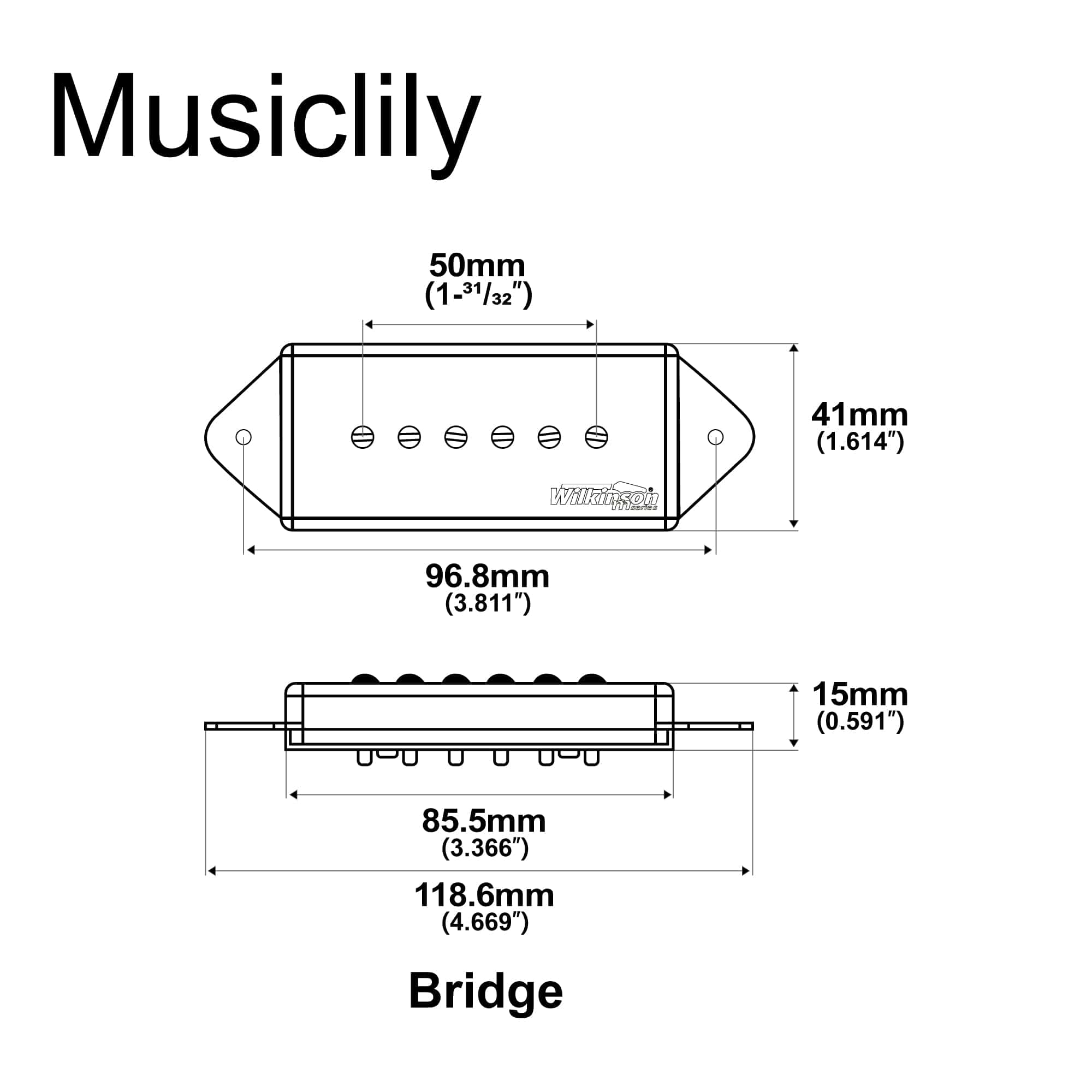 Pastilla de puente Wilkinson WO90 Ceramic P90 Dogear para