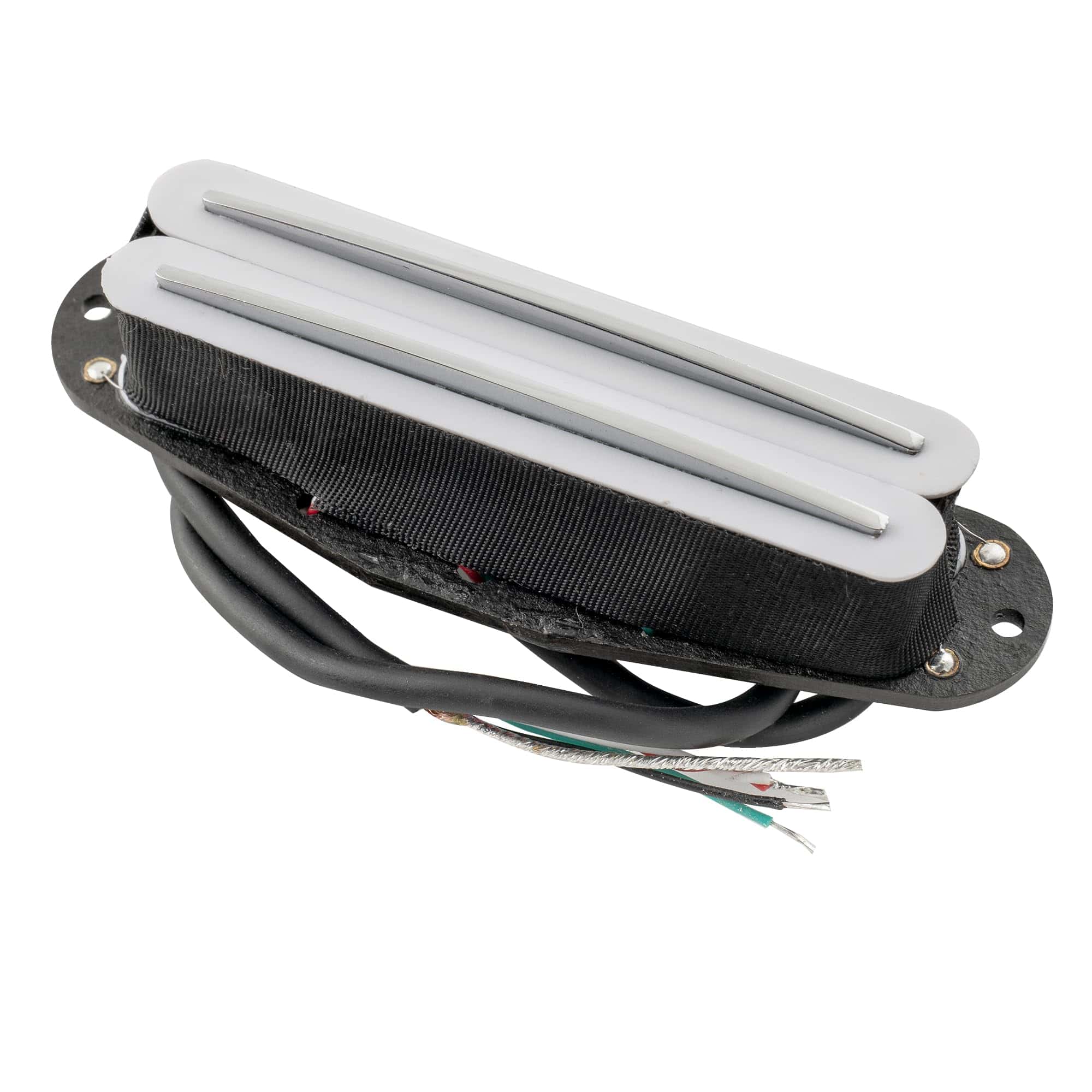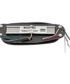 Pastilla Humbucker Artec SBA73 Alnico 5 Hot Rail de 12K para Guitarra Eléctrica Estilo Strat, Blanco. Esta pastilla está diseñada para ofrecer un tono brillante y abundante, con calidad de cancelación de zumbidos. Es adecuada para todas las posiciones de una guitarra eléctrica de estilo Strat, brindando claridad y cobertura de cuerdas excepcional, especialmente en las notas dobladas en los trastes más altos. Con un diseño de riel y una resistencia de 12K, este pickup proporciona un mayor nivel de salida y sustento. Incluye accesorios de montaje para una fácil instalación.
