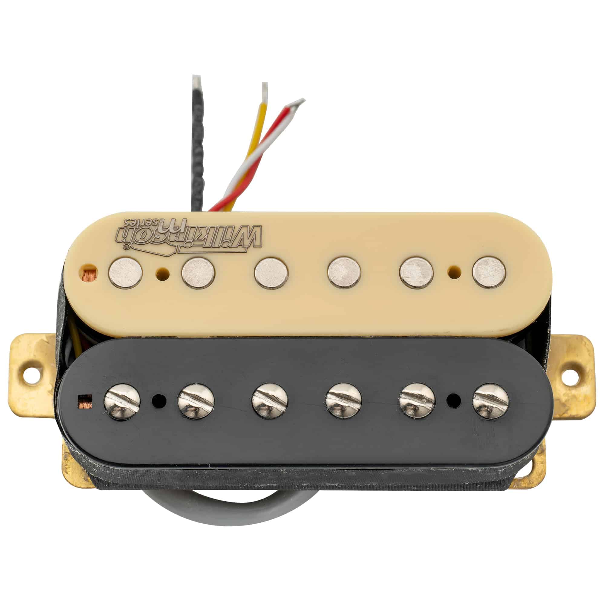 Pastilla Humbucker de Alnico 5 Overwound Estilo Vintage Clásico para Guitarra Eléctrica, Zebra. Esta popular pastilla humbucking overwound de estilo abierto se adapta a la mayoría de las guitarras eléctricas, como Fender, PRS, G&L, Ibanez, ESP, Jackson, etc., posición de mástil. Piezas genuinas de Wilkinson. Espaciado de polo de 50 mm, encerado. Imán: Alnico V, Resistencia: 7.6K. Cuatro cables conductores, cable negro es tierra, cable amarillo es caliente, rojo y blanco para dividir la bobina. Tono vintage, un sonido gordo y potente, con toneladas de armónicos y carácter. Los imanes de Alnico V proporcionan un enfoque y dinámicas increíbles. Paquete incluido: 1 pieza de pastilla. Nota: Nuestros tornillos pueden que no se ajusten a su uso, por favor use los suyos si puede.