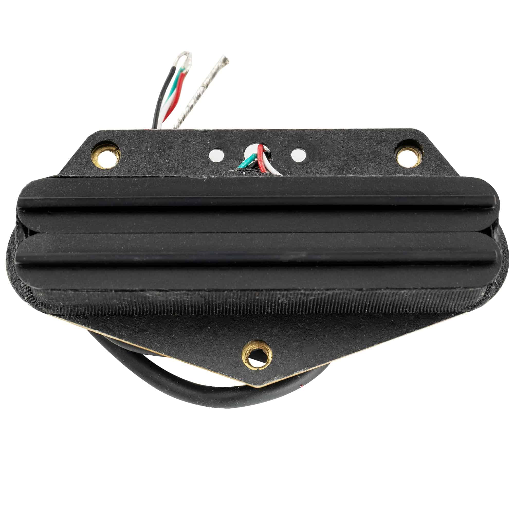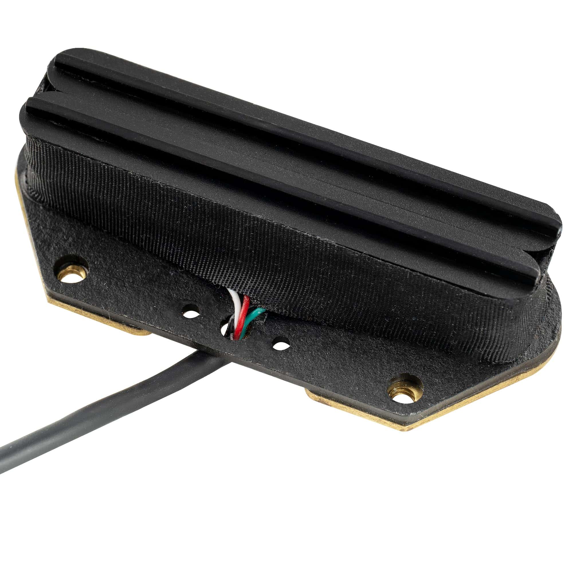Pastilla Humbucker de Puente Alnico 5 Hot Rail Single Coil Sized TRA73B de Artec 12K para Guitarra Eléctrica Estilo Tele, Negro. Esta pastilla está diseñada para adaptarse a guitarras eléctricas estilo Tele, en la posición de puente. Cuenta con imanes de Alnico V que permiten obtener un tono brillante y abundante, brindando una calidad de cancelación de ruido con aumento de salida y sustain. Su construcción de doble hoja proporciona una cobertura máxima de cuerdas y claridad, especialmente para notas que se doblan en los trastes más altos. La longitud de la rail es de 58mm (2-9/32 pulgadas), con una distancia entre agujeros de tornillos de montaje de 44.2mm (1-47/64 pulgadas) y 30mm (1-3/16 pulgadas). Con una resistencia de 12K y una tolerancia de 0.5K, este pickup cuenta con un imán de Alnico 5, bobina de fibra y 4 cables conductores. El paquete incluye 1 pastilla y accesorios de montaje. Nota: Nuestros tornillos pueden que no se ajusten a su uso, por favor use los suyos si puede.