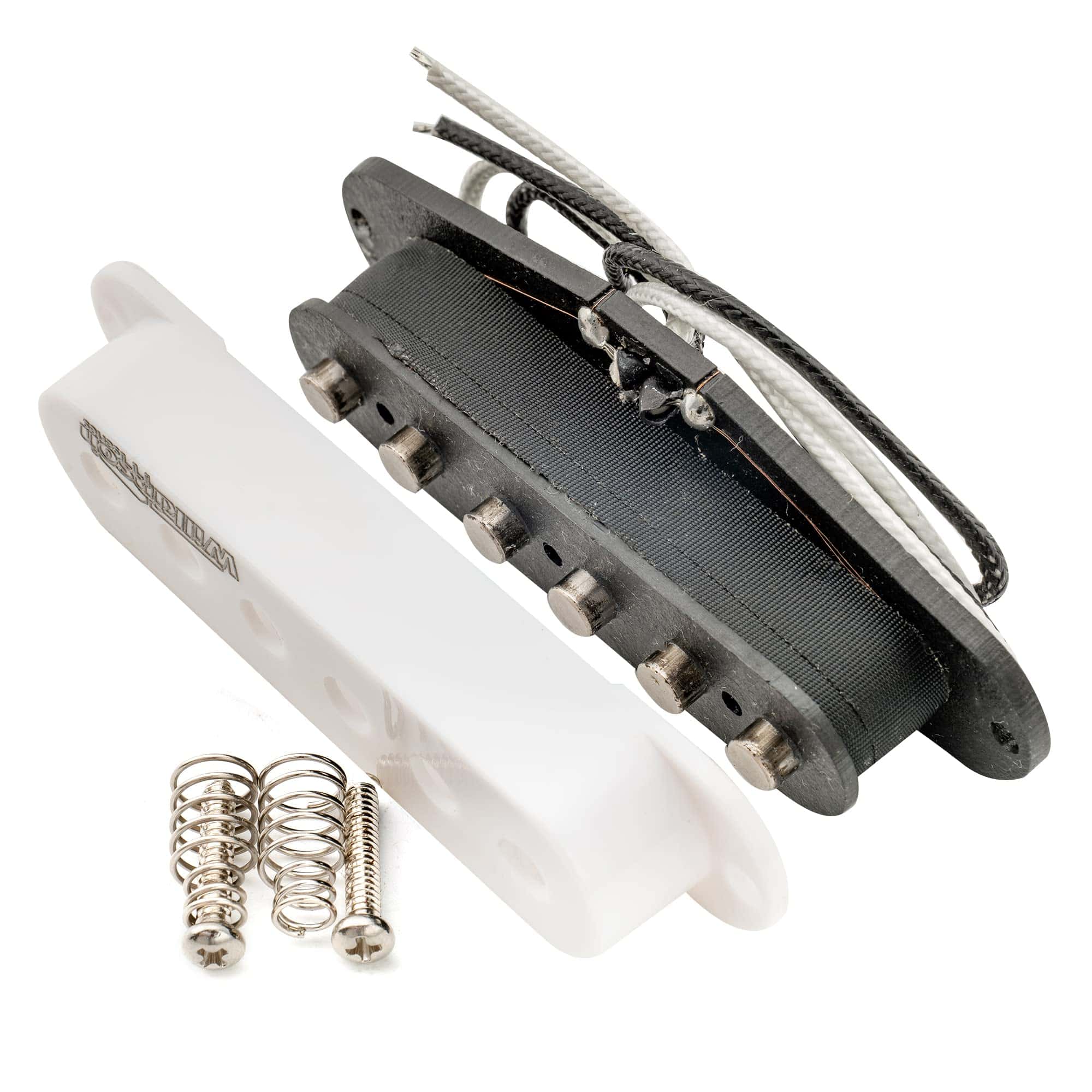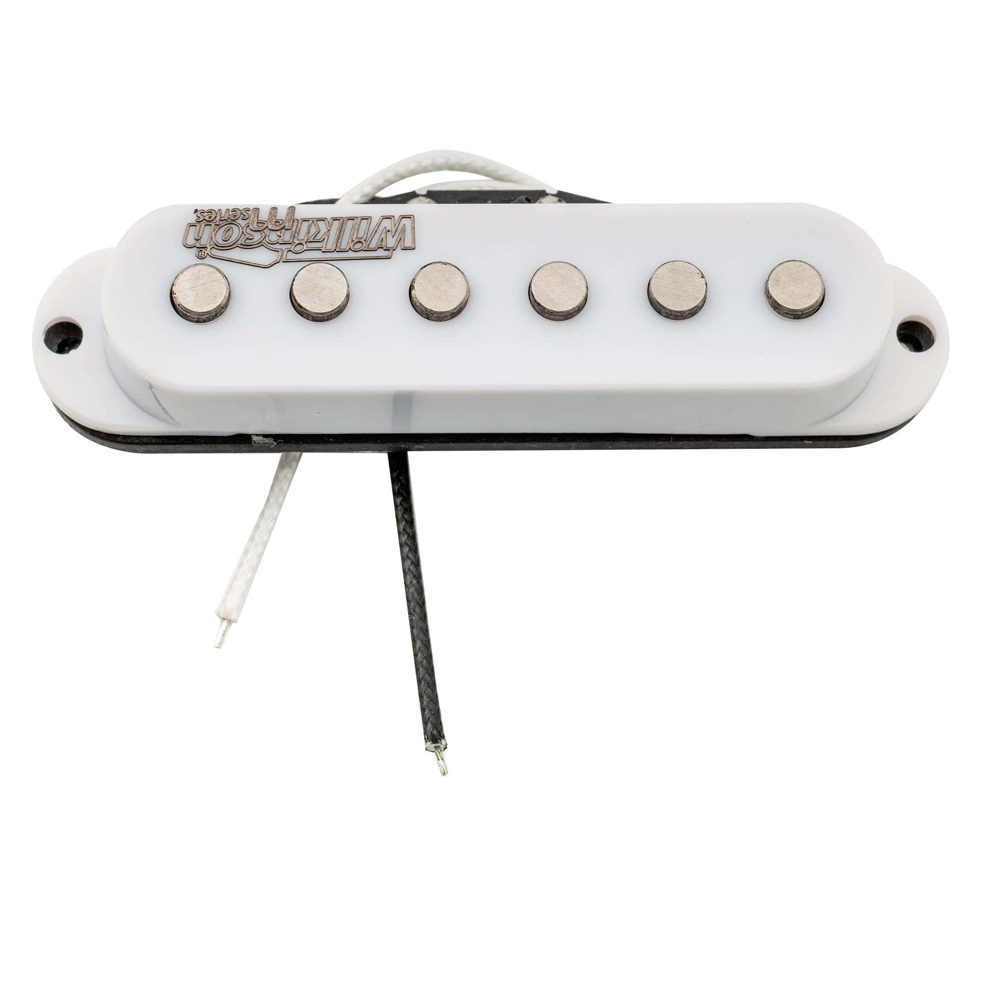 1. Para guitarra eléctrica estilo Strat, posición de mástil, encerada. 2. Piezas genuinas de Wilkinson, la serie M se fabrica en China y se distribuye por Musiclily. 3. Esta pastilla plana de alnico V proporciona una respuesta de cuerda uniforme que logra un equilibrio perfecto entre mayor potencia y carácter vintage. Ideal para músicos de rock que usan amplificadores distorsionados y pedales, utilícela como un juego completo para obtener un sonido de single coil enorme. 4. Imán: Alnico 5; Resistencia D.C.: 6.4K (±0.5K). El cable negro es tierra, el cable blanco es caliente. 5. El paquete incluye: 1 pieza de pastilla. Nota: Nuestros tornillos pueden que no se ajusten a su uso, por favor use los suyos si puede.