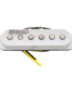 Pastilla simple de bobina media Wilkinson Vintage 60’s Staggered Alnico 5 para guitarra eléctrica estilo Strat en color blanco. Esta pastilla ofrece una calidez y tonalidad vintage asombrosa. Fabricada con imán Alnico V y una resistencia de 6K. La pastilla media es de polaridad inversa, lo que permite una función de cancelación de ruido. Incluye 1 pieza de pastilla en el paquete. Nota importante: Los tornillos incluidos pueden no adaptarse a su uso personal, se recomienda utilizar los adecuados.
