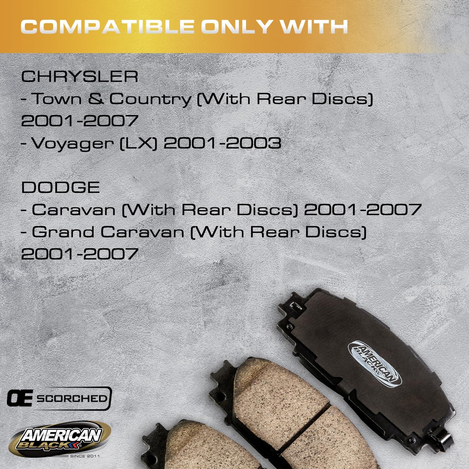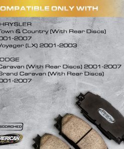 Pastillas de freno delanteras American Black D-857 PREMIUM metálicas compatibles con Town & Country/Voyager LX/Caravan & Grand Caravan desde 2001-2007. Estas pastillas de freno están diseñadas para mejorar la potencia de frenado con una experiencia silenciosa y segura en una variedad de condiciones de la carretera. La tecnología de molde positivo aplica presión extrema para comprimir el material de fricción y unirlo a la placa de respaldo, lo que garantiza un ajuste perfecto, silencioso y libre de polvo. Además, cuentan con forros, ranuras y biseles premium que ayudan a reducir el ruido, la vibración y la dureza de frenado. ¡Verifica tu modelo en las imágenes para asegurarte de compatibilidad!