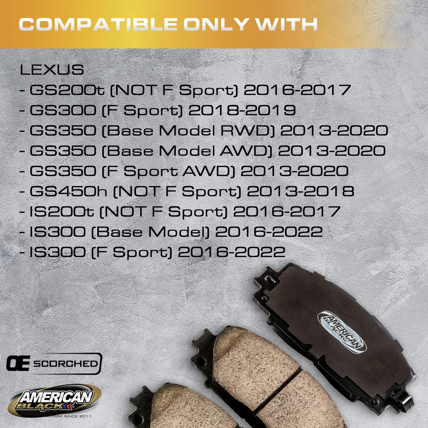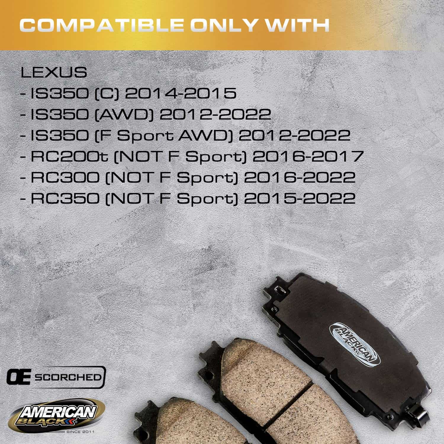 5. Pastillas de Freno Delanteras de Cerámica para Lexus GS200t (NO F Sport) 2016-2017 / GS300 (F Sport) 2018-2019 / GS350 (Modelo Base RWD) 2013-2020 / GS350 (Modelo Base AWD) 2013-2020 / GS350 (F Sport AWD) 2013-2020 / GS450h (NO F Sport) 2013-2018 / IS200t (NO F Sport) 2016-2017 / IS300 (Modelo Base) 2016-2022 / IS300 (F Sport) 2016-2022 / IS350 (C) 2014-2015 / IS350 (AWD) 2012-2022 / IS350 (F Sport AWD) 2012-2022 / RC200t (NO F Sport) 2016-2017 / RC300 (NO F Sport) 2016-2022 / RC350 (NO F Sport) 2015-2022