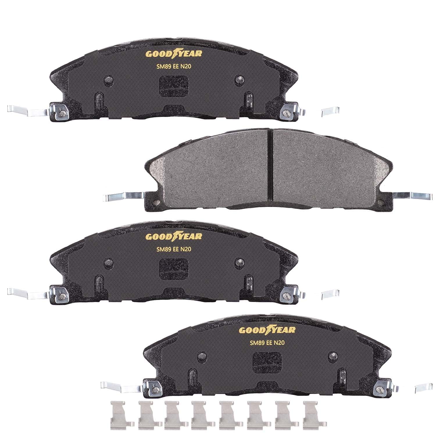 Las pastillas de freno Goodyear están formuladas específicamente para garantizar un frenado silencioso, con bajo polvo, manteniendo al mismo tiempo la máxima efectividad, control y durabilidad de frenado. Utilizamos una tecnología patentada de Shim de Trenza Vulcano para eliminar el ruido y proporcionar un viaje más cómodo – Se utilizan ranuras y chaflanes que cumplen con las especificaciones del equipo original para reducir la vibración y la decoloración de los frenos. Goodyear Brakes siempre aplica un acabado de calidad con recubrimiento en polvo en cada pastilla de freno para una máxima protección contra la intemperie y la corrosión. Los kits de hardware premium se incluyen cuando sea necesario. Las pastillas de freno Goodyear se fabrican con orgullo en los EE. UU.