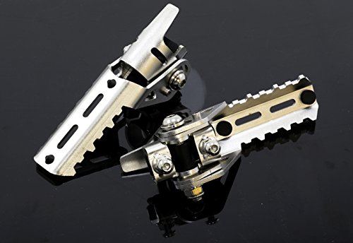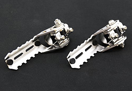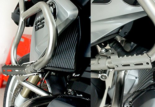 Característica: ¡Finalmente! – ¡una forma de relajar las piernas en viajes largos! Estas pata de apoyo para highway son reposapiés plegables adicionales que te permiten estirar las piernas en una posición más cómoda mientras conduces. Hacen que los trayectos largos sean más fáciles. Las pata de apoyo para highway proporcionan un agarre óptimo incluso para botas pesadas, gracias a su superficie serrada desarrollada en carreras de enduro. Se pliegan cerca del tubo, ocupando muy poco espacio – una ventaja obvia si la situación se pone ajustada durante una excursión todoterreno. Compatibilidad del vehículo: todas las motocicletas con barra de choque del motor de 25mm (1″ ) (BMW R1200GS 13-arriba (Triumph Tiger Explorer) Nota: 1. El color puede diferir un 5% de las fotos mostradas en línea 2. Por favor, confirme si el artículo puede adaptarse a su motocicleta antes de realizar el pedido. Incluido en el paquete: 1 juego