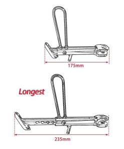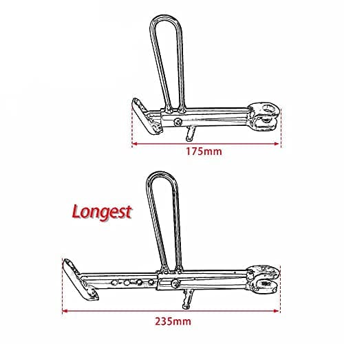 Las patas de cabra ajustables te permitirán acortar la pata de cabra cuando bajes tu moto y no tendrás que preocuparte por alterar tu pata de cabra de serie. Cambiar tu enlace de bajada hace que la moto se coloque recta o de lado, lo que te obliga a cortar y volver a soldar tu pata de cabra de serie. Mantiene tu moto en el ángulo correcto para una posición de parada segura. Material: Acero. Totalmente ajustable con 6 posiciones diferentes. Ajuste simple con 1 tornillo, llave allen incluida. Fácil de instalar utilizando tu hardware de fábrica y muelles. Conserva el uso del interruptor de seguridad de pata de cabra de fábrica. Color: Negro recubierto en polvo. Ajusta desde la longitud de serie a 5.5″-7″. Un imprescindible cuando bajas tu moto.
