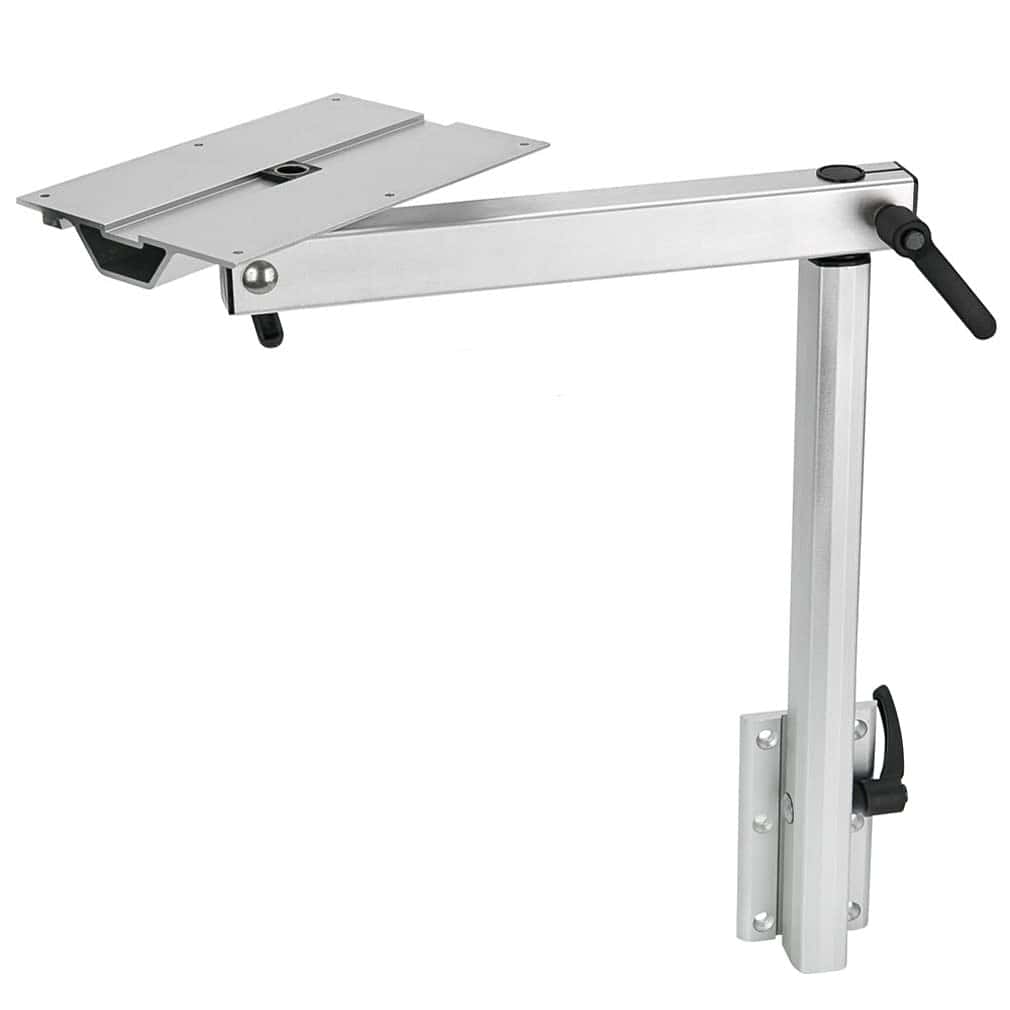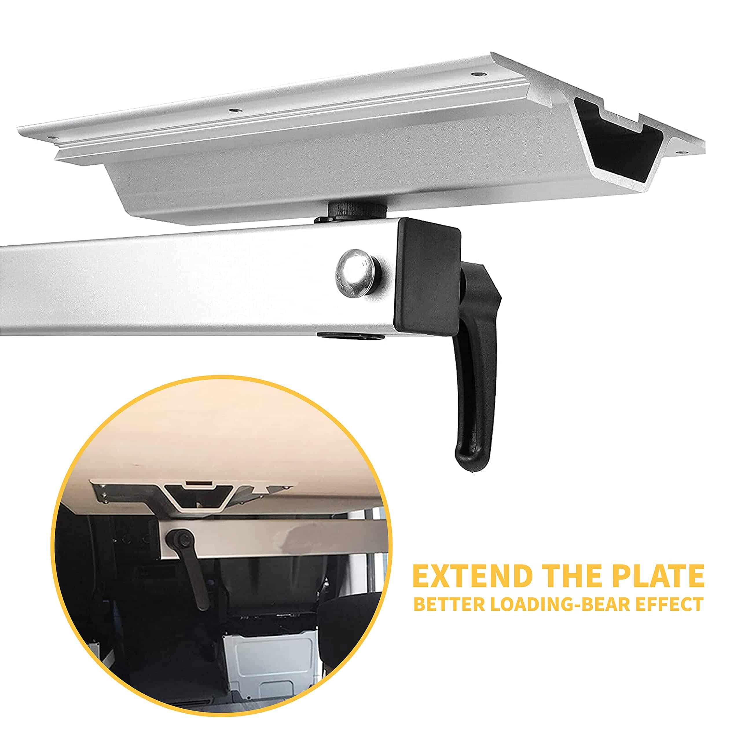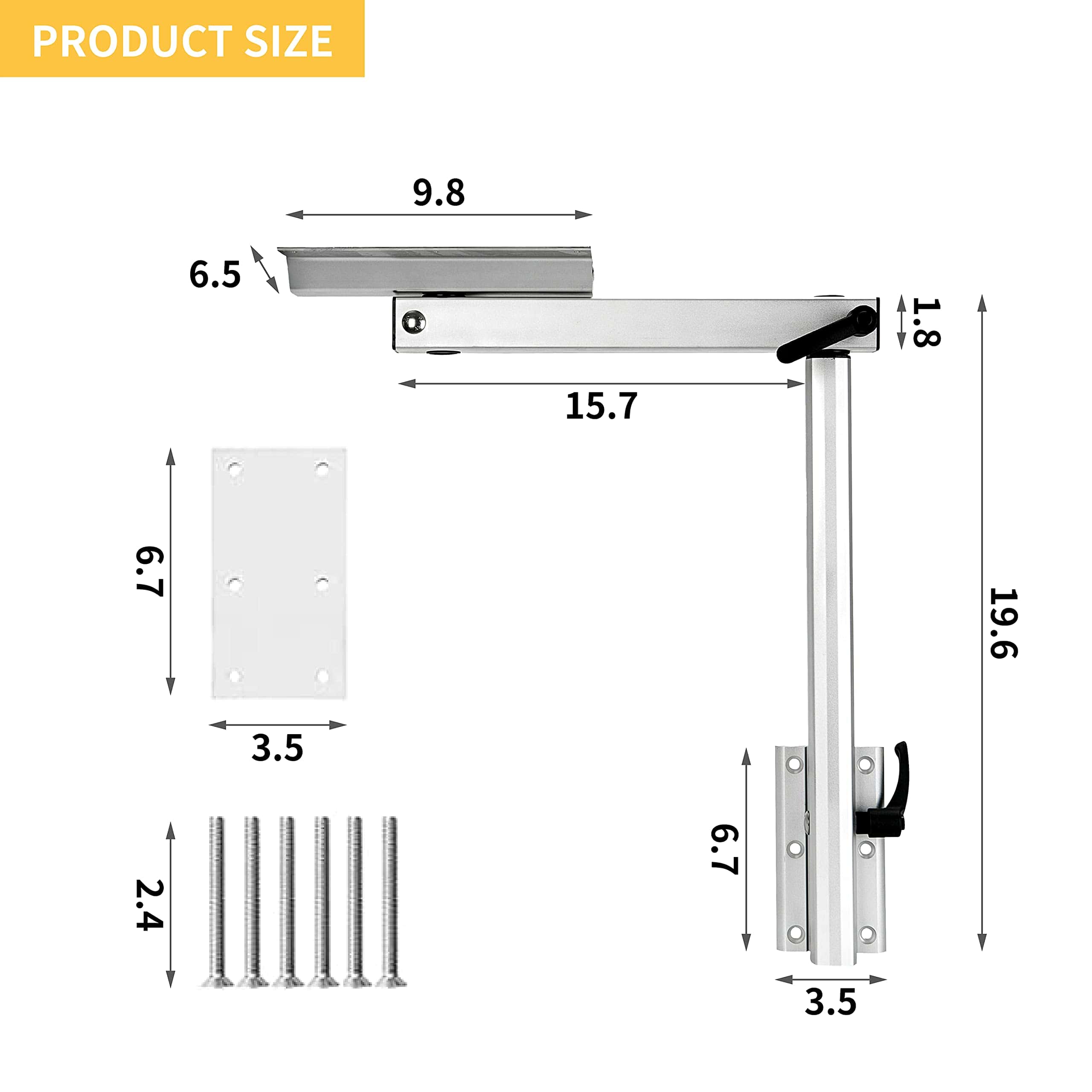 Categoría de producto: estante de mesa multifuncional Funciones: giratorio, ajustable y desmontable Longitud del brazo: 400 mm Altura del soporte: 500 mm Material: aleación de aluminio Propósito: cubierta y patio de RV, vehículo multipropósito, yate, etc. Peso neto / peso bruto: 3,40 kg / 4,0 kg Capacidad de carga: 50 kg, según el material de la pared, se recomienda utilizar placas delgadas para hacer que los agujeros de la pantalla sean más fuertes