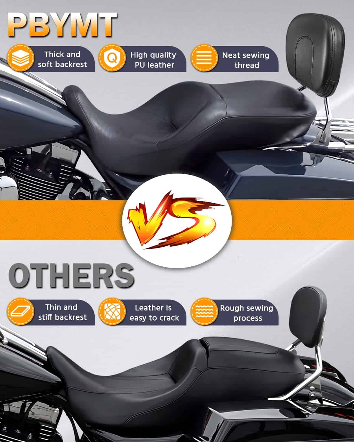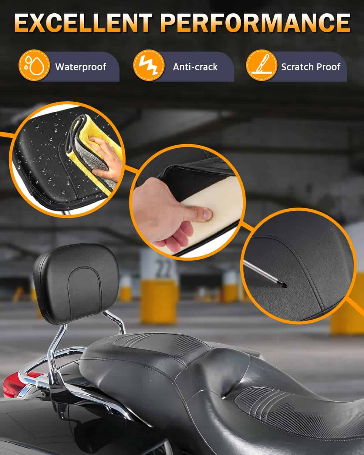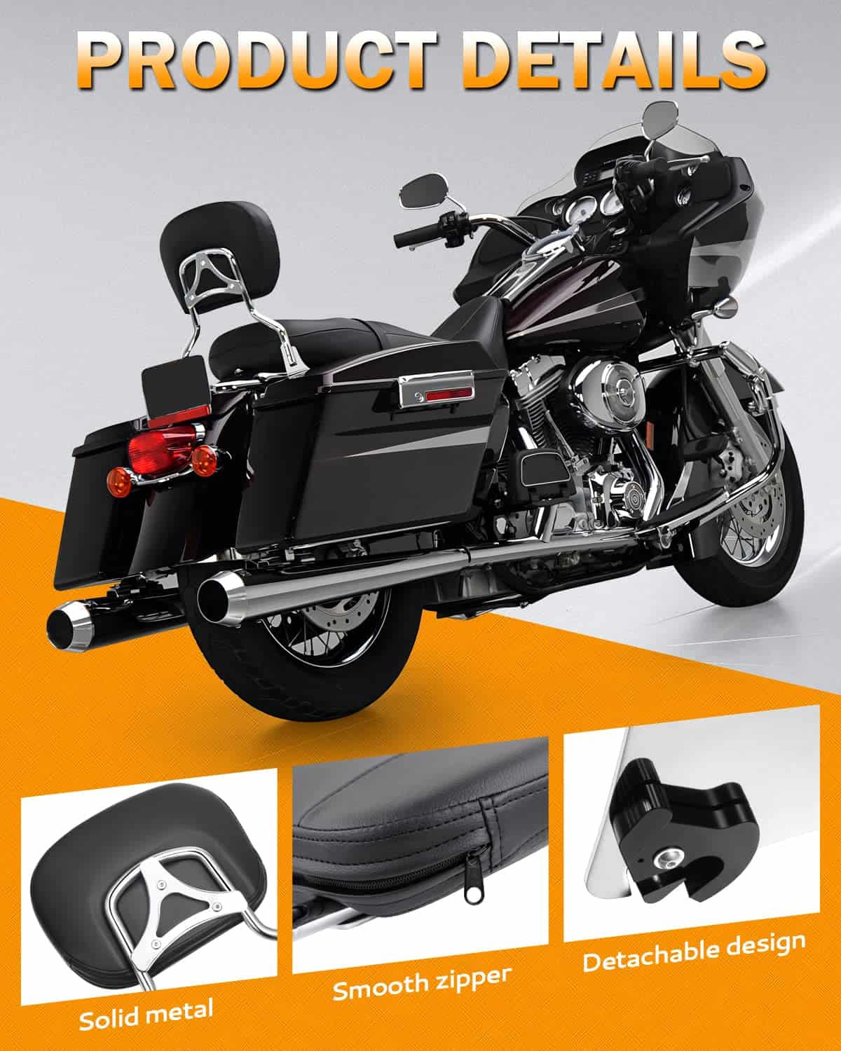 2. MATERIAL – El respaldo para pasajeros está hecho de acero de alta calidad, duradero y de larga vida útil. El cojín del respaldo con cuero suave y relleno de espuma brinda excelente soporte lumbar para el pasajero y mejora la comodidad de conducción en viajes largos.