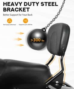 4. FÁCIL DE INSTALAR Y USAR – El sissy bar desmontable compatible con Harley es plug and play, fácil de instalar y quitar. Su acabado brillante es fácil de limpiar y resistente a los arañazos, mientras que el diseño con cremallera de la almohadilla permite una instalación y extracción sin esfuerzo.