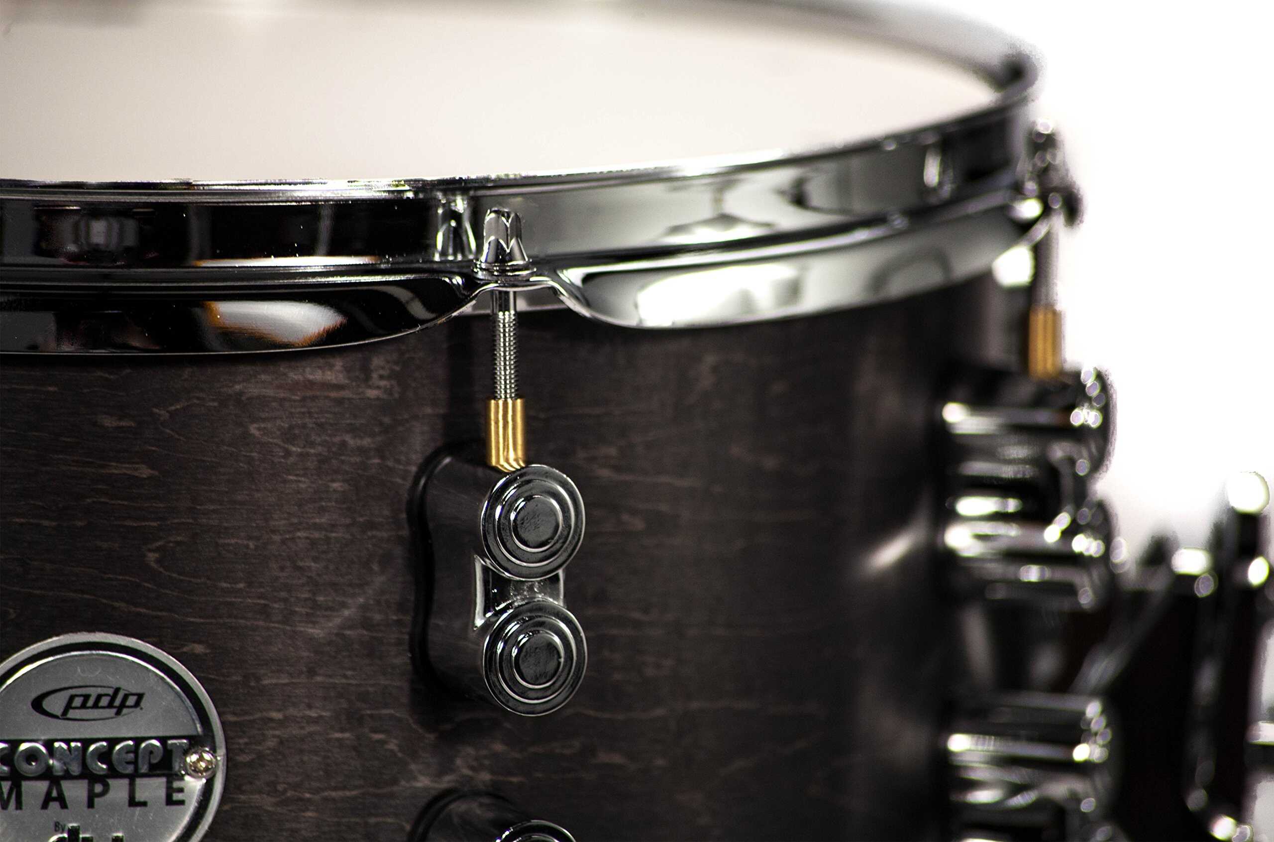 The PDP Concept Series Black Wax snares feature a matte black finish over a 10 ply maple shell. The smooth finish is a hand-applied wax-based sealer which gives this collection a deceivingly understated look. The 10 plys of maple combine with a unique 7×13 size to give this snare a higher tuning range and a cool mix of depth, body and pop. True Pitch tension rods fitted in brass inserts, DW/Remo Tuning Sequence heads, and the DW Mag drop-style throw-off make this snare a great addition for any drummer looking to add a new voice into to the kit.