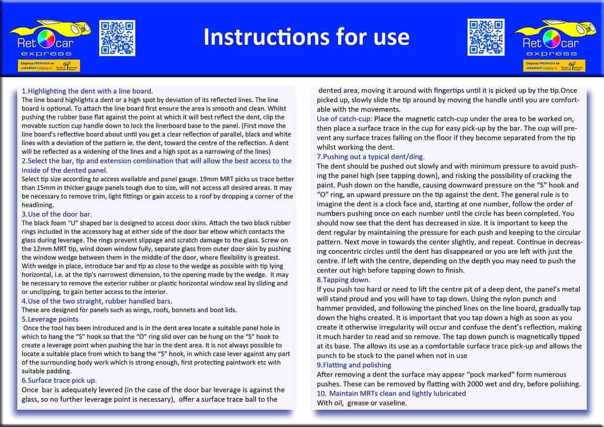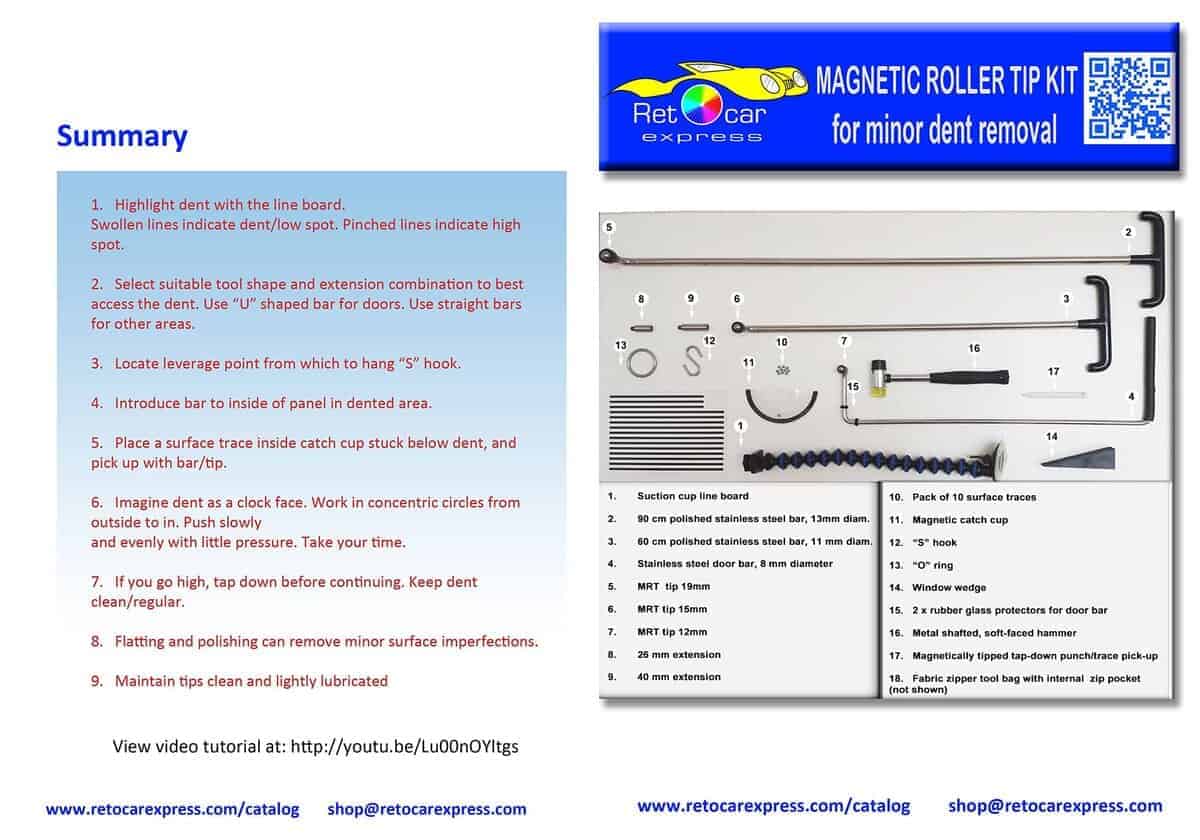 La técnica de Reparación de Daños sin Pintura (PDR) requiere que el usuario sepa exactamente dónde está la herramienta escondida punta no se puede sacar la abolladura sin dejar bultos no deseados hacia afuera. Se necesita meses o años para perfeccionar lo que significa un tiempo y dinero significativos. Nuestro sistema patentado significa que un rastro en la superficie es atraído a través de la carrocería del vehículo hacia la punta magnética de giro libre, mostrando al usuario exactamente dónde presionar para eliminar los bultos menores. «Es casi como hacer trampa», en palabras del Gurú de PDR Myke Toledo de Dent Time USA, al revisar las herramientas. La punta de bola magnética puede moverse libremente en todos los ejes, equilibrando así el movimiento de la tira y siempre dibujando el rastro hacia uno de los polos que está en contacto con la carrocería del automóvil debido a la atracción magnética. Esto significa que eres milimétricamente preciso al procesar una abolladura. Ideal para talleres de carrocería, reparaciones SMART, concesionarios de automóviles, minoristas o cualquier persona, una vez comprado, no hay consumibles. Juego estándar. Este set incluye: barra de 90 cm (acero inoxidable pulido, diámetro de 13 mm, mango de goma), barra de 60 cm (acero inoxidable pulido, diámetro de 11 mm, mango de goma), barra de la puerta (acero inoxidable pulido, diámetro de 8 mm, mango de espuma), extensión de 25 mm, extensión de 40 mm, tablero reflector con ventosa, martillo con mango de metal, contenedor magnético para recoger, cuña de ventana, gancho «S», anillo «O», 10 puntas de superficie con punta magnética, punta MRI de aluminio de 19 mm, punta MRI de aluminio de 15 mm, punta MRI de aluminio de 12 mm, colector de goma protector para barra de la puerta, bolsa de herramientas de tela, PDR, herramientas de construcción de carrocerías, reparación de abolladuras, reparación de carrocerías, reparación de carrocerías, daño por granizo, abolladuras, reparación de abolladuras sin pintar. Reparación de abolladuras PDR para principiantes Aprenda PDR rodillo magnético