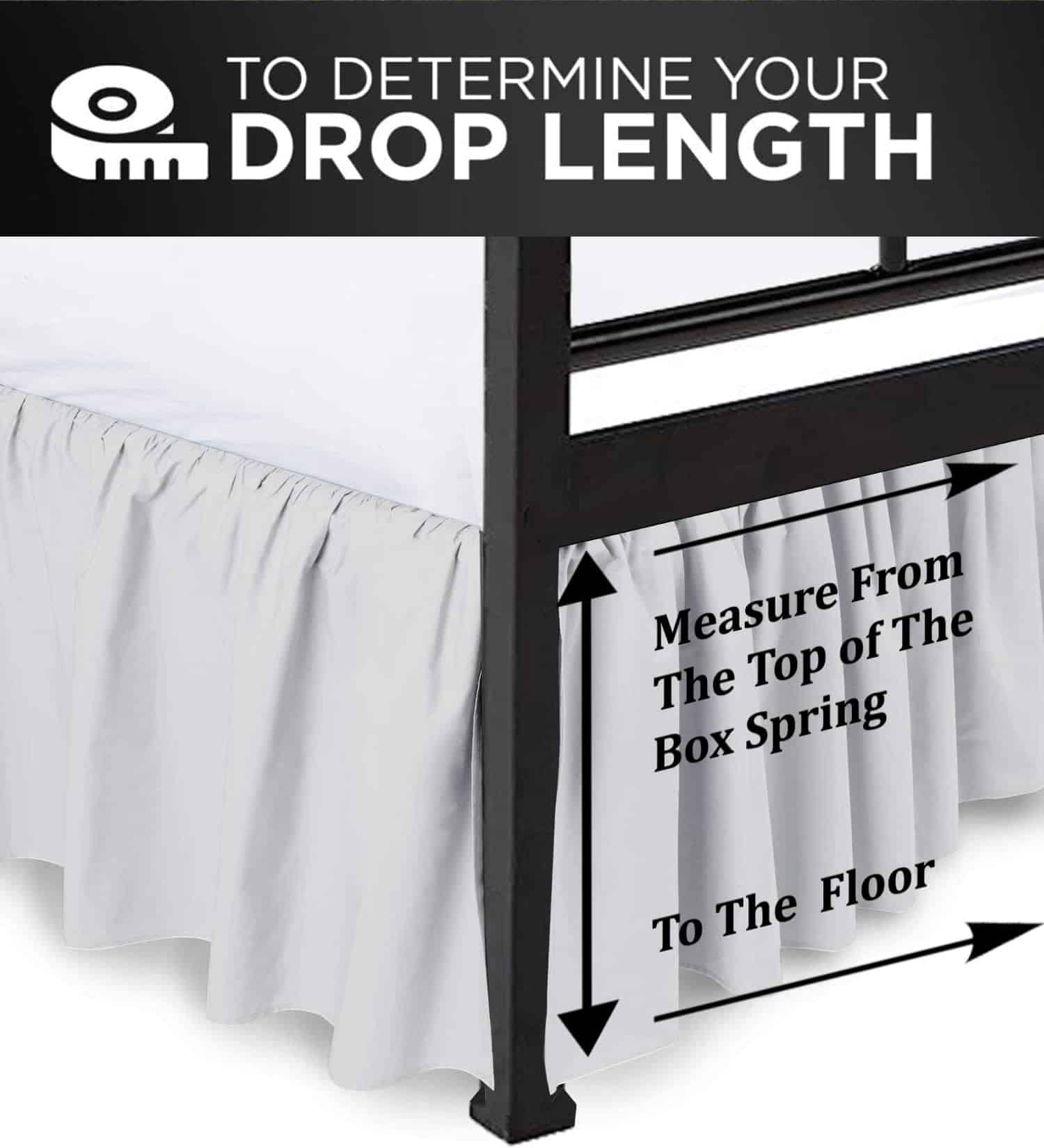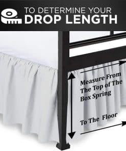 3. EL PAQUETE INCLUYE: 1 Falda de Cama Fruncida de Tamaño Queen con Esquinas Divididas mide (60″X80″) con una caída de 18 pulgadas. La falda de cama con volantes tiene una caída generosa de tamaño Queen – 18″ pulgadas llega fácilmente al suelo y oculta cualquier almacenamiento debajo de la cama, oculta somieres deformados, marcos de cama o simplemente para dar a su cama un aspecto uniforme y elegante.