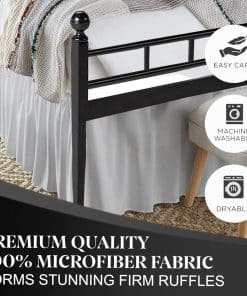 1. TELA DE MICROFIBRA DE LUJO: La falda de cama fruncida está hecha de tela de microfibra fina al 100% suavemente fruncida para un aspecto romántico pero a medida. La tela es resistente al polvo y las manchas, sin arrugas, y extremadamente suave y lisa.