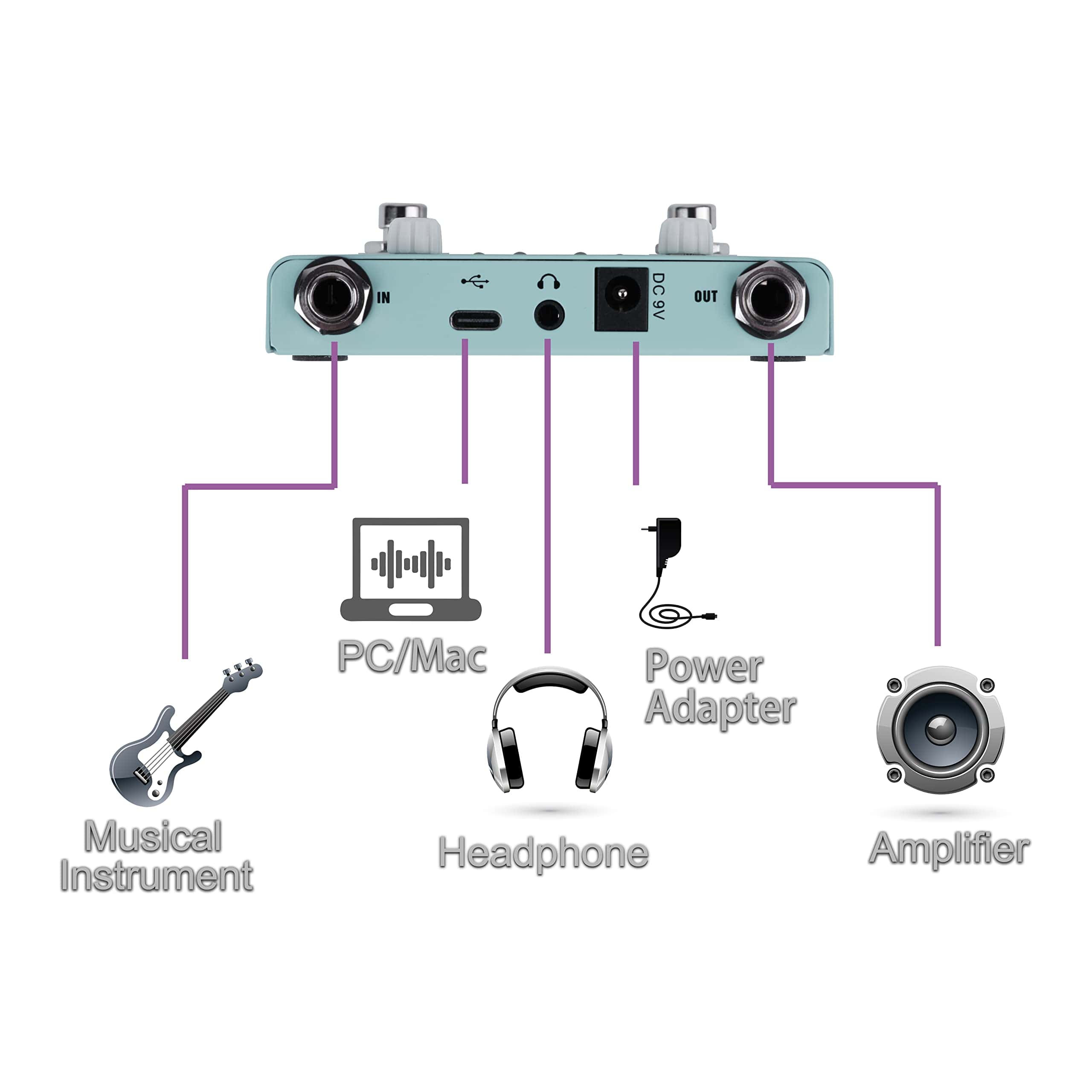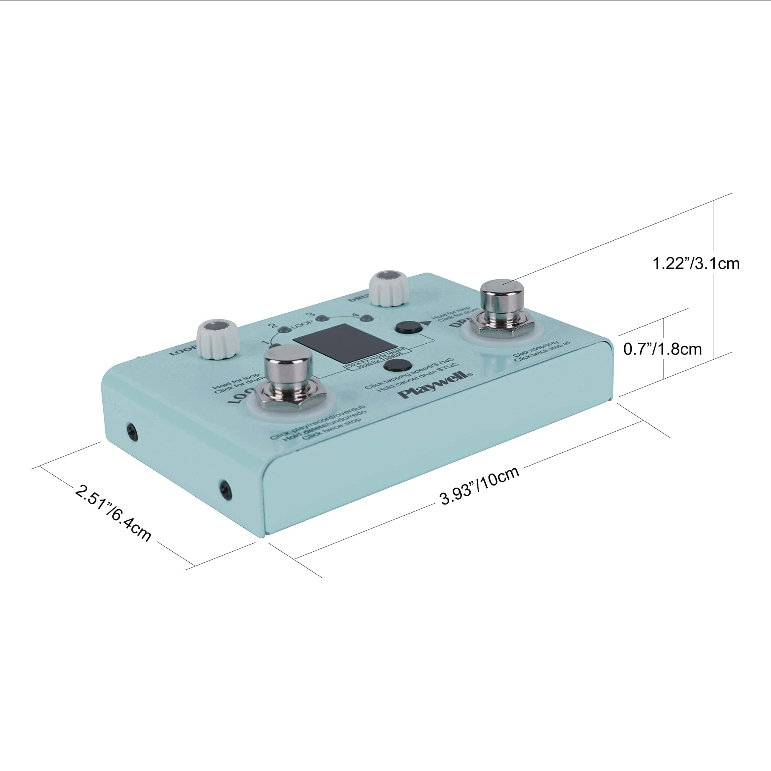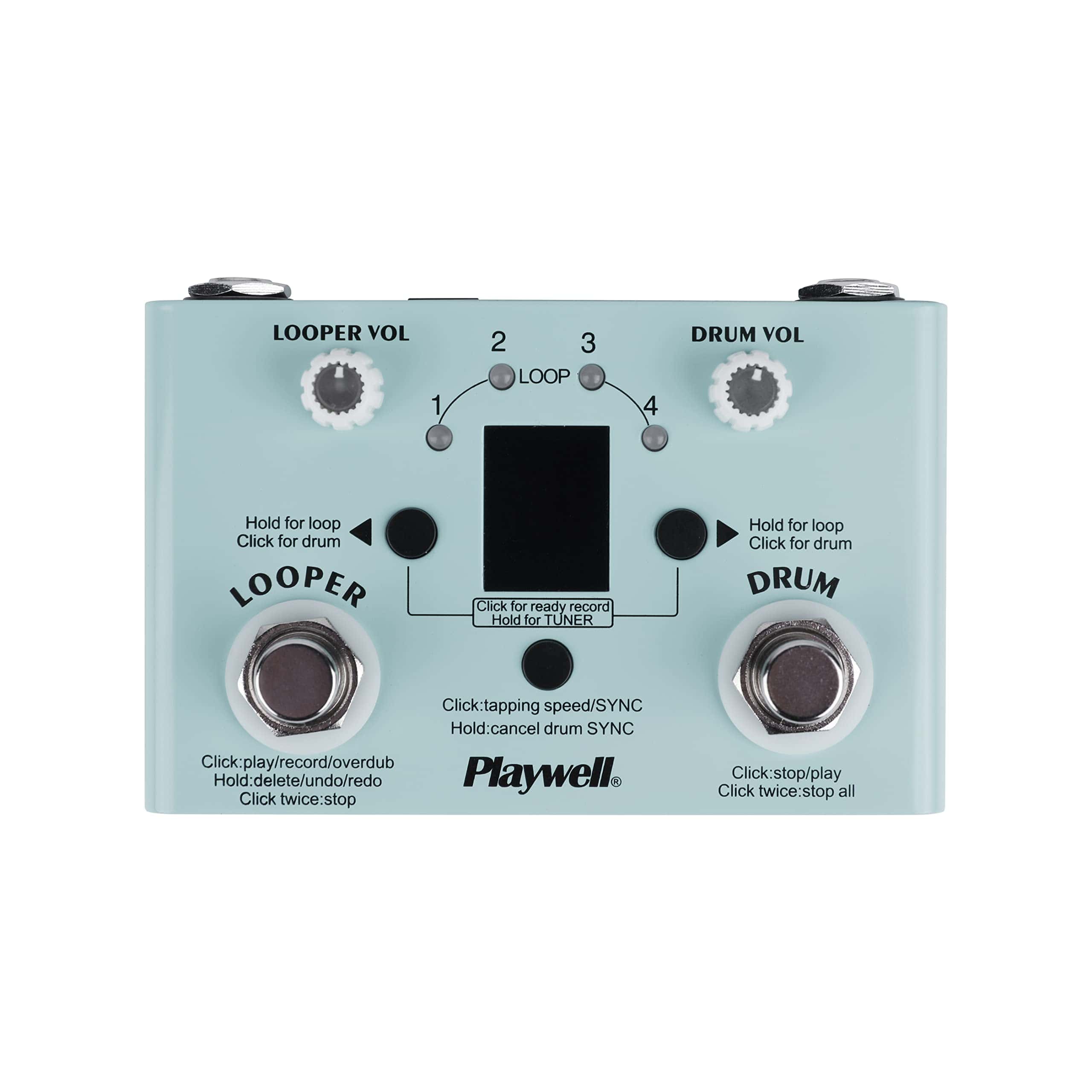 1. Cuatro modos: afinador, batería electrónica, loop, y modo mixto de batería electrónica y loop. 2. Incorpora 30 baterías preestablecidas, con soporte de app para personalizar, editar y guardar baterías. Los usuarios del mismo producto también pueden compartir códigos de batería entre ellos a través de la app. 3. Cuatro ubicaciones de almacenamiento de canciones de loop, con un tiempo total de grabación de no más de 11 minutos. El tiempo máximo de grabación de una sola ubicación de almacenamiento es de 5 minutos. Cada canción puede ser grabada con pistas superpuestas ilimitadas. 4. El indicador LED y la pantalla digital hacen que la grabación sea más intuitiva y conveniente. 5. La batería electrónica y el loop pueden ajustar el volumen por separado. 6. Modos de suministro de energía con DC 9V 300mA negativo en el interior y USB 5V 300mA. 7. Cuerpo de metal completo, resistente y duradero.