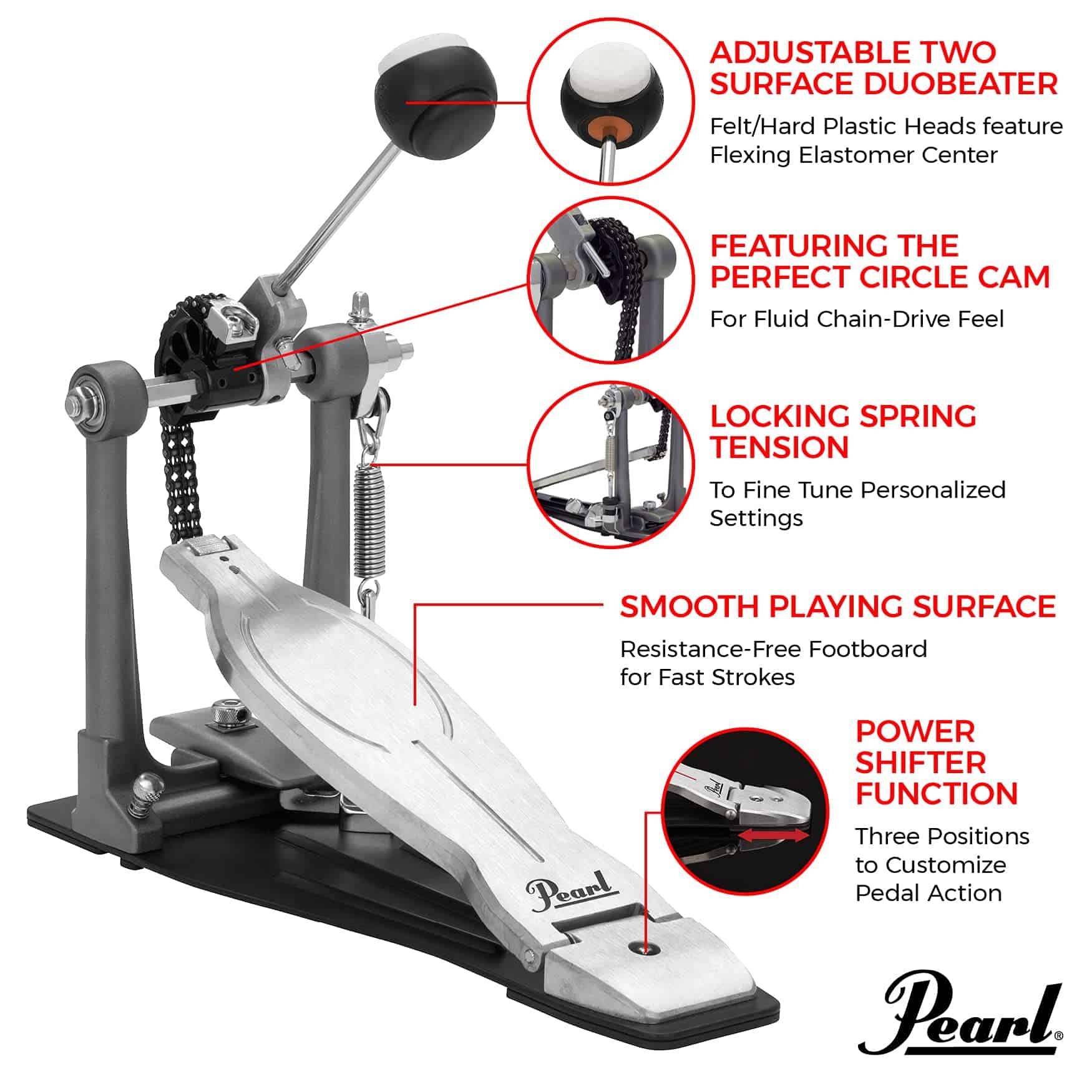 Pedal de bombo Pearl Eliminator Solo: Negra Cam Individual