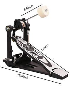 1. Doble cadena turbo cam. Pedal de bombo de alta resistencia con un péndulo de resorte único. 2. El ángulo del batidor es ajustable. Carrera y tensión ajustables. Viene con llave de tambor. 3. Gran rebote, excelente disparador. Es un pedal de buena calidad y muy asequible. 4. Adecuado para más bateristas, bateristas de jazz y amantes de la batería electrónica para practicar pedales de batería.
