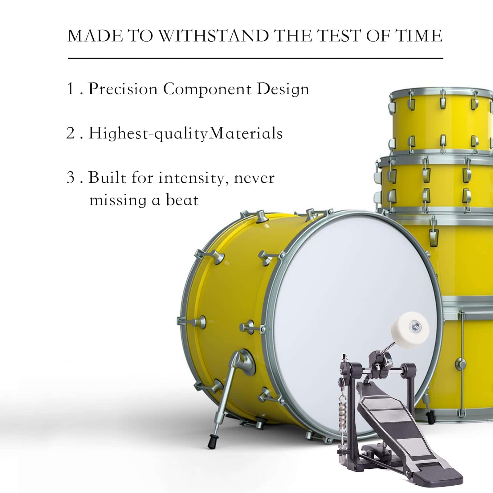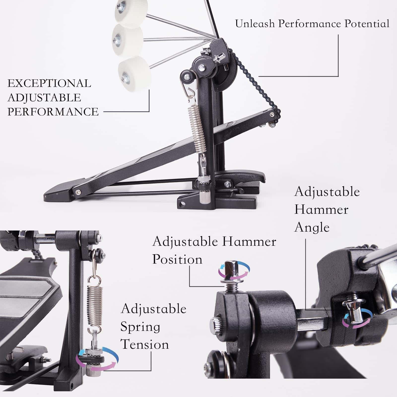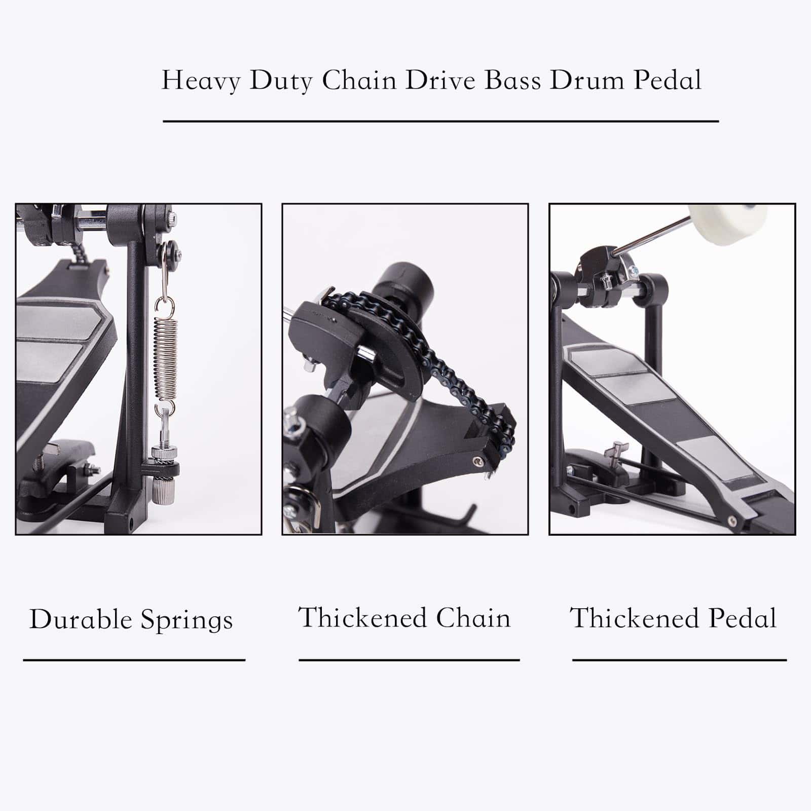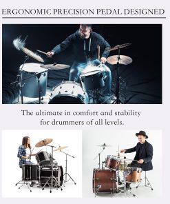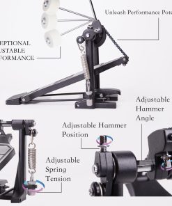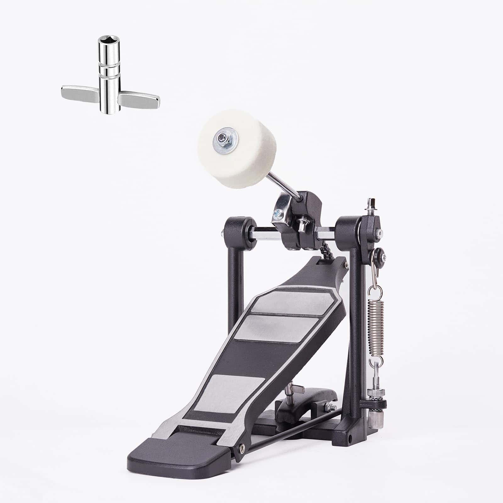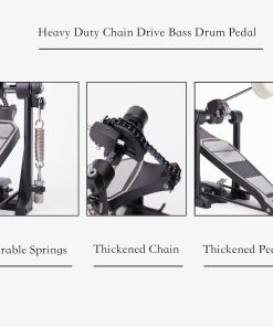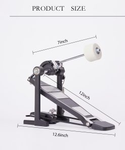 Pedal de bombo individual Vaisoeny, ideal para baterías electrónicas o kits de batería acústica. Este pedal de bombo cuenta con un diseño más robusto que incluye una cadena gruesa, una placa base más ancha, un pedal más largo y un diseño sobrepeso para una mayor resistencia. Con múltiples tornillos y resortes de tensión, el pedal de bombo proporciona una acción de batería suave y estable. Además, el ángulo del batidor es ajustable para que los músicos puedan personalizar la excursión del batidor y el recorrido del pedal. Adecuado para bateristas de Jazz y amantes de las baterías electrónicas, este pedal de bombo es fácil de instalar y requiere poco ajuste fuera de la caja para una experiencia de batería óptima.
