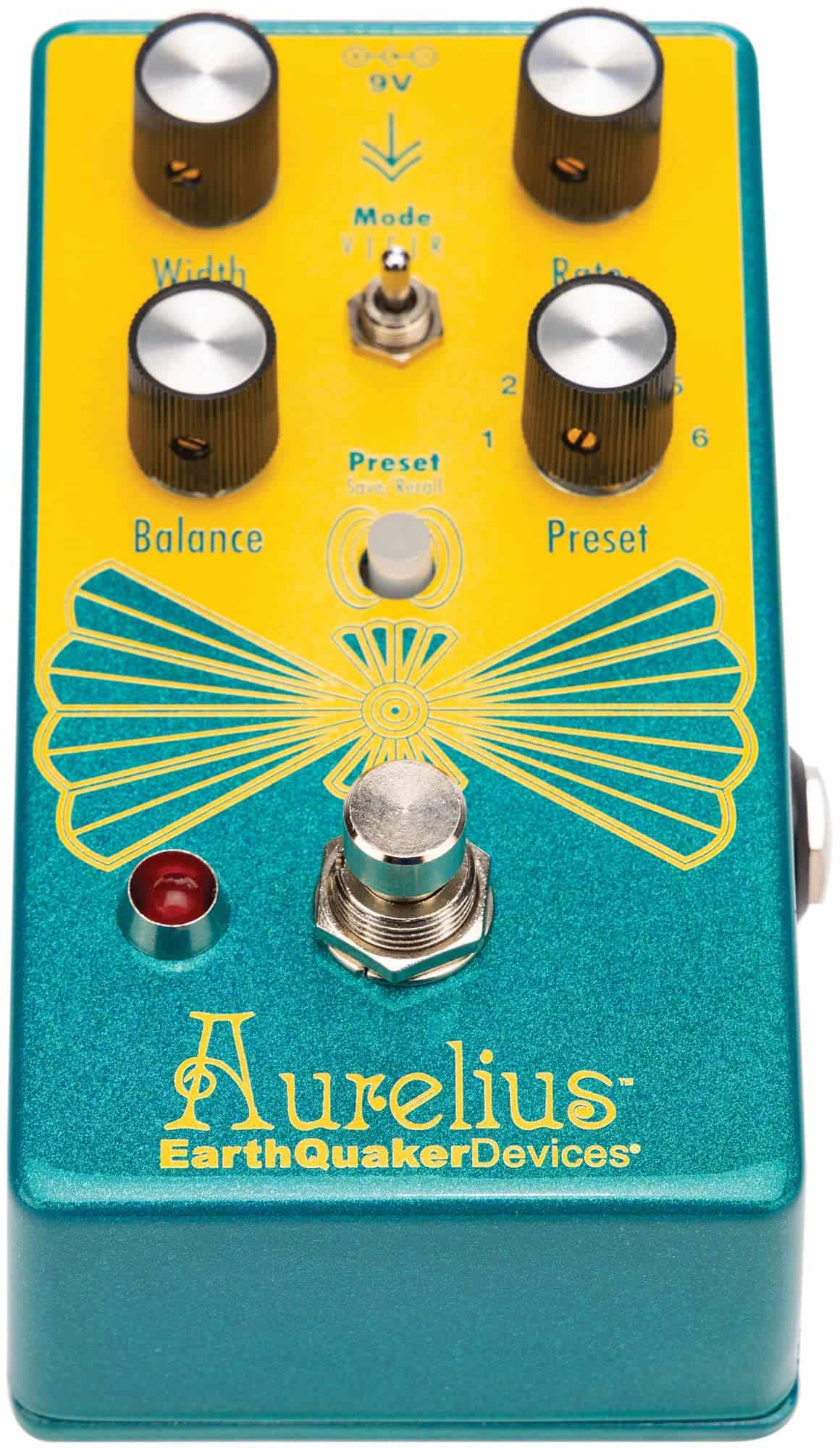 El Aurelius es un coro digital de tres modos inspirado en el CE-1 Chorus Ensemble de los años 70 con seis preajustes programables y un control de expresión. Elija entre el Modo Vibrato (V), Modo Chorus (C) y Modo Rotatorio (R) y manipule su Ancho, Velocidad y Balance para ajustar el sonido que desea y guarde/recuerde hasta seis configuraciones de su elección. Coro de tres voces en Modo Chorus/Vibrato: es un efecto de tipo coro tradicional familiar que se inclina hacia el vibrato con un LFO triangular modulando una línea de retardo corta en Modo Chorus/Flanger: es una mezcla de coro y flanger. Tiene más calidez y velocidades más lentas que el Modo Chorus/Vibrato y utiliza un LFO de onda sinusoidal para modular la línea de retardo. Modo Rotatorio: es un efecto de coro rotativo modelado según el sonido de un gabinete de altavoz Leslie. Dos modos de operación globales que se indican por el color del interruptor de Guardar/Recuperar: Modo En Vivo Verde – Modo Preestablecido Rojo Seis ranuras preestablecidas: Control de expresión asignable por el usuario True bypass Conmutación silenciosa basada en relé con tecnología Flexi-Switch Consumo de corriente: 75 mA Impedancia de entrada: 500 k Impedancia de salida: 100 Precio de Lista/FMAP en EEUU: $199.00 USD Precio al por Mayor: $139.30 USD GTIN-12 (U.P.C): 810019913297 SKU: EQDAUREV1USA Dimensiones en Caja: 5.25 x 3.25 x 3.25 (133.35 x 82.55 x 82.55 mm) Dimensiones Fuera de la Caja: 5 x 2.625 x 2.125 (127 x 67 x 54 mm) Peso en Caja: 16 oz (453.6 g) Peso Fuera de la Caja: 9.85 oz (279.3 g)