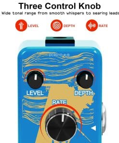 2. 3 perillas de función: Hay tres perillas funcionales de este pedal de efectos de guitarra. Nivel/Profundidad/Velocidad. Tiene un sonido rico y un efecto de coro de rango amplio.