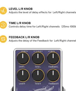 3. Rango de Delay Versátil: Ofrece un amplio rango de tiempo de delay de 25ms a 1000ms para cada canal independiente, perfecto para crear desde golpes rápidos hasta ecos prolongados adecuados para diversos estilos de guitarra.