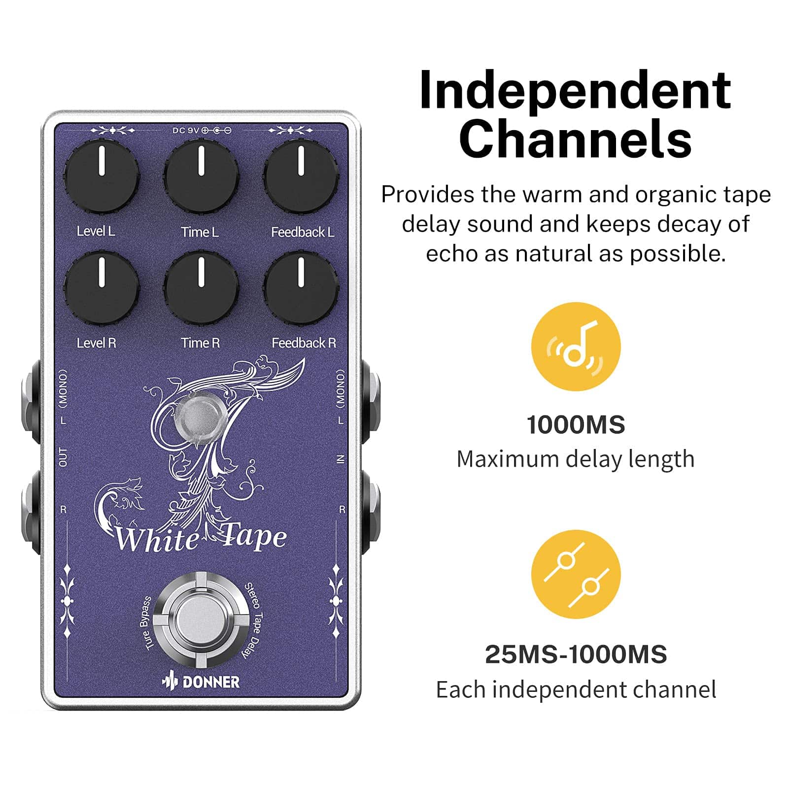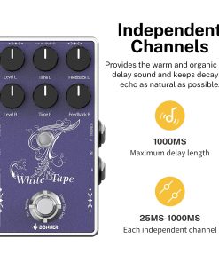 1. Emulación Legendaria de Eco de Cinta: El pedal de delay estéreo Donner White Tape replica magistralmente el icónico sonido de las clásicas máquinas de eco de cinta, ofreciendo una experiencia auténtica con cada uso.