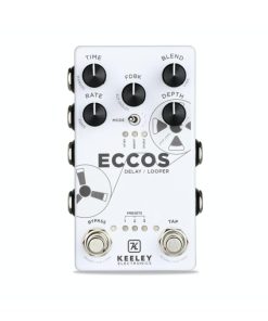 El Pedal de Delay y Looper ECCOS se basa en un nuevo tono de delay estéreo flanger. ¡Crea líneas de delay estilo cinta con un hermoso sonido y luego hazlas girar sin fin con el Looper! ¡Diseñado para estar en casa en sistemas profesionales en vivo o estudios de dormitorio mientras experimentas! El Keeley ECCOS es una estación de trabajo de delay-looper con una calidad de sonido excelente y abundantes características.