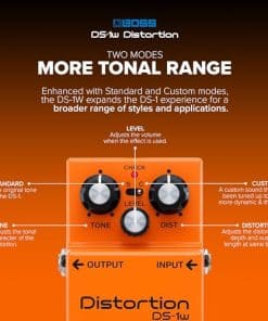 El clásico BOSS Distortion, mejorado con la artesanía Waza introducido en 1978 entre los primeros modelos de la serie compacta de BOSS, el DS-1 naranja redefinió el sonido de la distorsión y sigue siendo tan influyente hoy como siempre. Su ataque contundente y su sostenido suave lo han convertido en el efecto compacto más vendido hasta la fecha, y su tono distintivo se encuentra detrás de los sonidos característicos de una larga lista de iconos del rock y alternativos. Con el DS-1W, este pedal legendario se une a otros clásicos de BOSS en la serie Waza Craft, fusionando el aspecto y carácter original con un circuito completamente analógico revisado para una gama y versatilidad ampliadas.