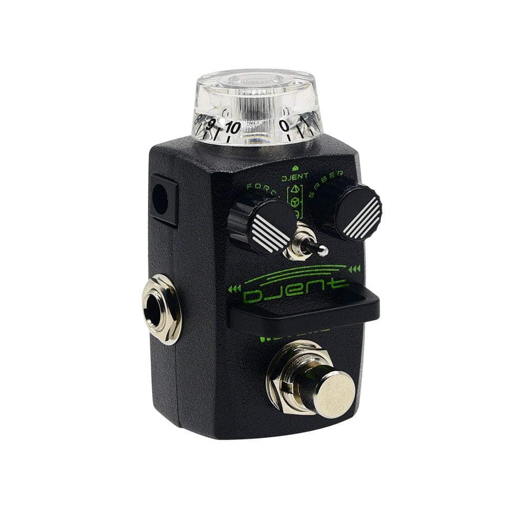 ¡El Hotone Skyline Djent es un monstruo! ¡No te dejes engañar por el tamaño! Es una herramienta mega versátil de triple voz para amantes de la ganancia moderna. El control FORCE regula el nivel de volumen de salida; El control Djent regula la cantidad de distorsión; El control SABER da forma al carácter de la gama de medios, desde antiguas trituraciones de medios hundidos hasta rugientes prog djenteos modernos. Hay 3 personajes de ganancia incorporados: el modo AGRESIVO (posición arriba) viene con una mejoría de bajos y presencia; el modo Neutro (posición intermedia) te brinda un sonido más plano con una conformación de EQ más equilibrada; el modo SUAVE (posición abajo) te proporciona un tono más suave y cálido. En los 3 modos, el tono viene con gran articulación. Incluso con el máximo de ganancia, aún puedes identificar los detalles de cada cuerda de tu guitarra. Características: Pedal de Bypass Verdadero Cubierta Exterior de Aleación de Zinc Perilla superior transparente y 2 perillas negras pequeñas geniales Luces LED geniales Consumo de Corriente: 20mA Dimensiones: 74mm (D) x 44mm (W) x 44mm (H) Peso: 190 g