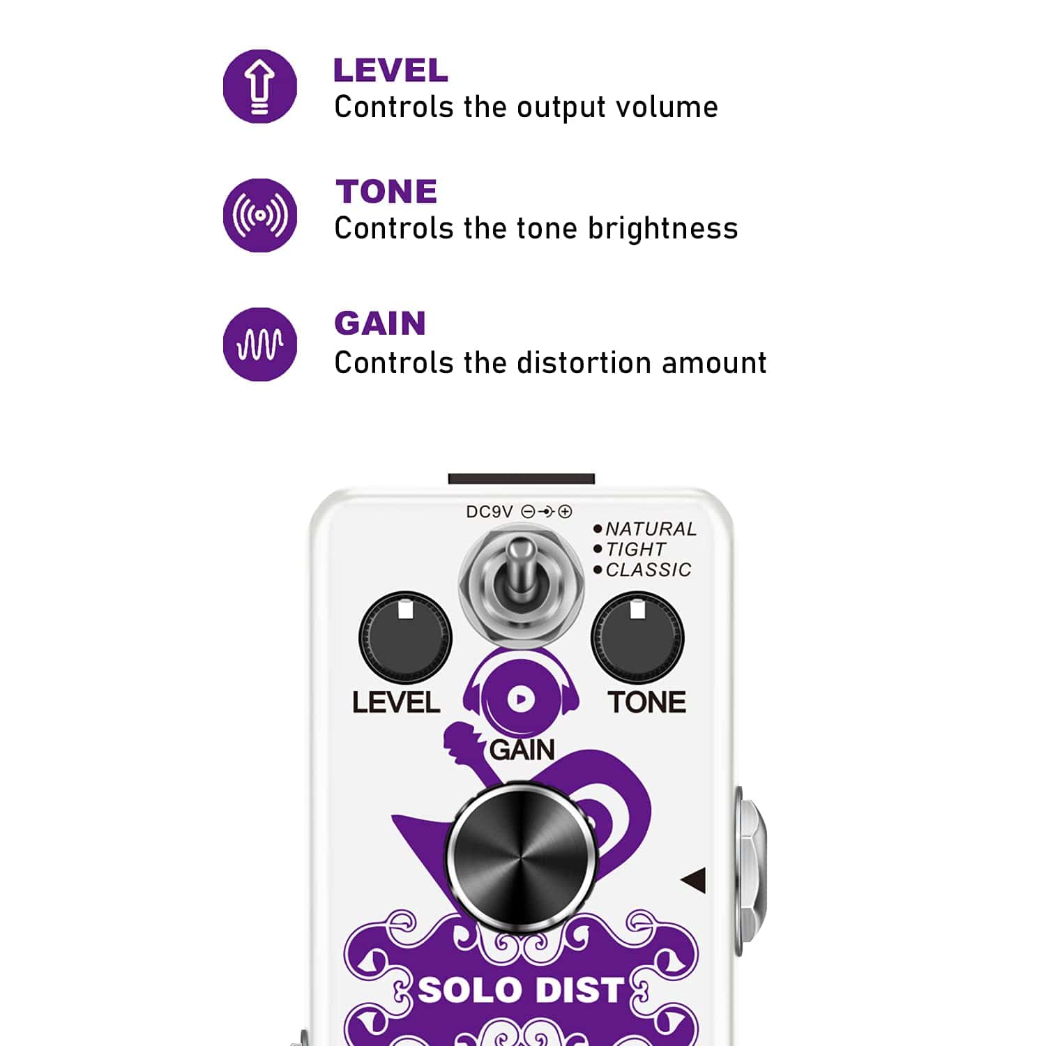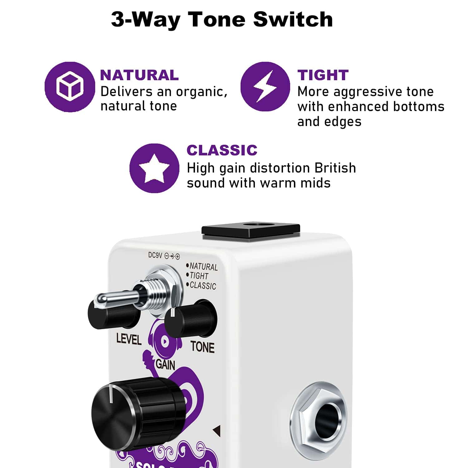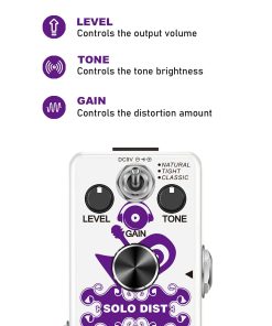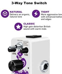 El pedal de distorsión Vivlex LEF-301B puede hacer que tu amplificador de tubo pequeño suene más completo y fuerte como el efecto de sonido «Full Stack». Conservando la estructura de sonido original, no habrá frecuencias de pánico, graves apagados o frecuencias medias abrumadoras. La distorsión de alta ganancia en todos los lados con excelente respuesta dinámica y definición, el sonido de distorsión analógica británica al 100% te lleva desde el crujido clásico de Marshall-Stack hasta el paraíso de alta ganancia.