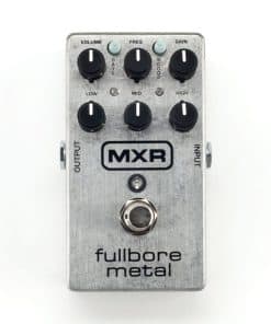 El poder definitivo de los riffs es tuyo con el pedal de distorsión Fullbore Metal de MXR. Este dispositivo compacto pero poderoso es todo lo que necesitas para liberar los tonos de guitarra de metal contemporáneo más devastadores que se hayan escuchado. El pedal de distorsión Fullbore Metal turbo-carga tu señal de guitarra con cantidades letales de ultra alta ganancia. Esto se combina con un Noise Gate incorporado para eliminar el ruido asociado con niveles extremos de ganancia, al tiempo que agrega definición y apretura a los riffs de metal sincopados. ¡Conéctate al pedal de distorsión Fullbore Metal de alta ganancia de MXR y experimenta toda la fuerza de lo que tu guitarra puede hacer por ti! Equipado con todas las herramientas que necesitas para riffs y solos de alta ganancia monstruosos, el Fullbore Metal incluye un EQ de 3 bandas con frecuencias medias variables, un efectivo Noise Gate conmutable que puedes ajustar a tu gusto, y un interruptor Scoop que aumenta los graves y agudos para un tono de metal potente. Toda esta funcionalidad está empaquetada en un chasis muy compacto y resistente, lo que hace que el pedal Fullbore Metal sea una gran adición a tu pedalera.