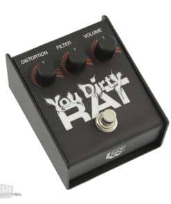 Vamos directo al grano. ¿La mayoría de la ropa en tu armario llegó a las perchas antes de la administración Reagan? ¿Estás de acuerdo con los críticos que dicen que la mejor música se hizo antes de 1968, pero también quieres ser el que demuestre lo contrario El Pedal You Dirty RAT combina el sonido del garaje con el espíritu de innovación. Este es el sonido más clásico de todos los pedales de distorsión RAT. Piensa en el rock de garaje de los 60. Piensa en el punk temprano. Piensa en las bandas que cambiaron el sonido del rock and roll. La clave del tono You Dirty RAT está en sus diodos de recorte de germanio. Cualquier aficionado a los pedales te dirá que nada se compara con el tono cálido que proporcionan estos componentes tan buscados. Este pedal es el punto intermedio perfecto entre distorsión y fuzz, combinando el característico tono de corte RAT con la calidez de un tono de fuzz clásico. El You Dirty RAT también proporciona 3 dB más de compresión que el RAT original. Esto no solo proporciona más «calidez de amplificador de válvulas», sino que también añade sustain adicional. El You Dirty RAT cuenta con el legendario control de Filtro RAT. Gíralo hacia la derecha para atenuar frecuencias agudas quebradizas. ¿Tienes problemas para destacar en la mezcla Baja el Filtro y deja que brille el brillo natural de tu instrumento. Los controles de Distorsión y Volumen ajustan la cantidad perfecta de ganancia manteniendo el nivel consistente con tu tono limpio. Si bien no hay error en el legendario tono RAT cuando el pedal está encendido, el switching de derivación verdadero garantiza que no se introduzca ruido adicional en tu señal cuando está apagado.